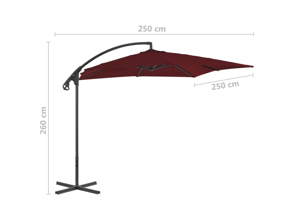 Boční zahradní slunečník s ocelovou tyčí 250 x 250 cm bordó 312510