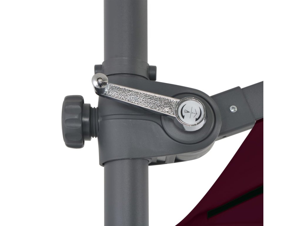 Stříška slunečníku je vyrobená z polyesterové tkaniny, která nebledne a nepropouští škodlivé UV záření, takže vám poskytne optimální ochranu před sluncem. Navíc se snadno čistí. Slunečník je vybavený křížovou základnou, která zaručuje lepší stabilitu. Exkluzivní konstrukce vám umožní ho naklánět a otáčet o 360 stupňů, aby optimálně blokoval slunce. Silná hliníková tyč s 8 odolnými žebry zajišťuje, že se slunečník nehýbe a hodně toho vydrží. Zahradní slunečník disponuje klikovým mechanismem, takže se snadno otevírá i zavírá.