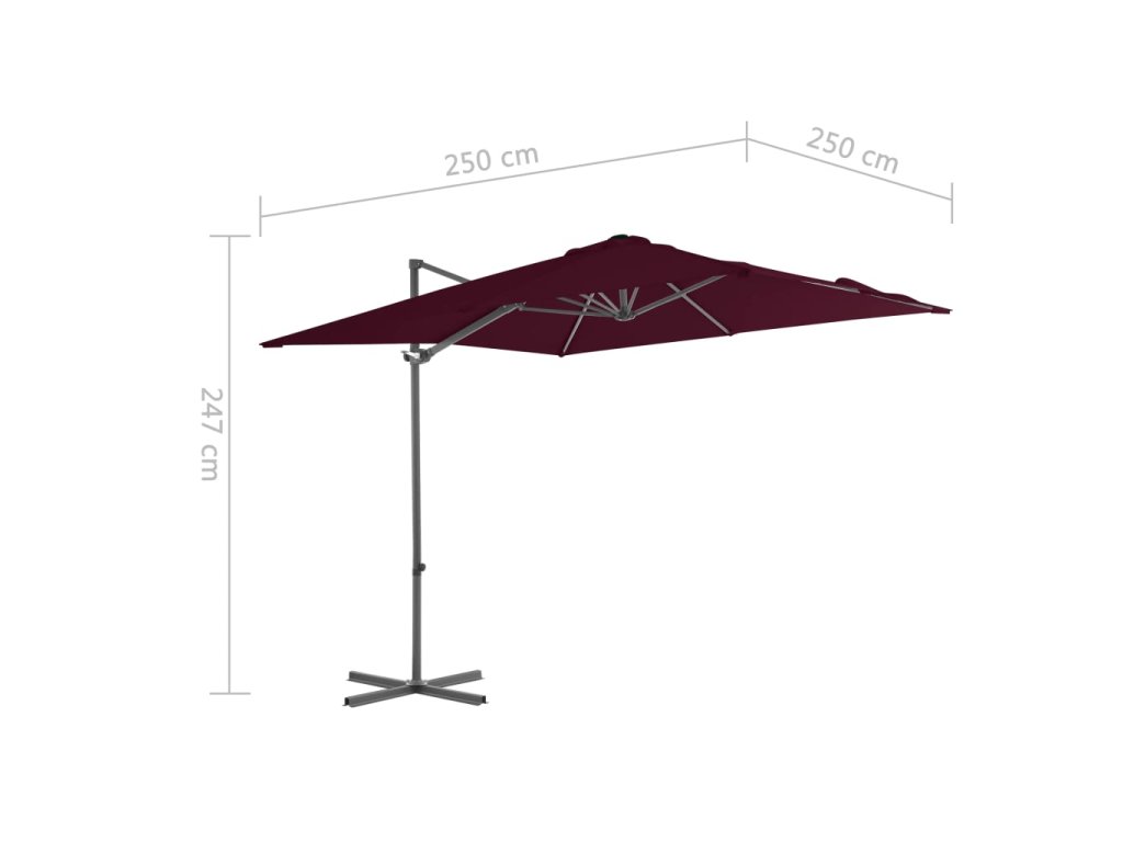 Boční zahradní slunečník s ocelovou tyčí bordó 250 x 250 cm 312308