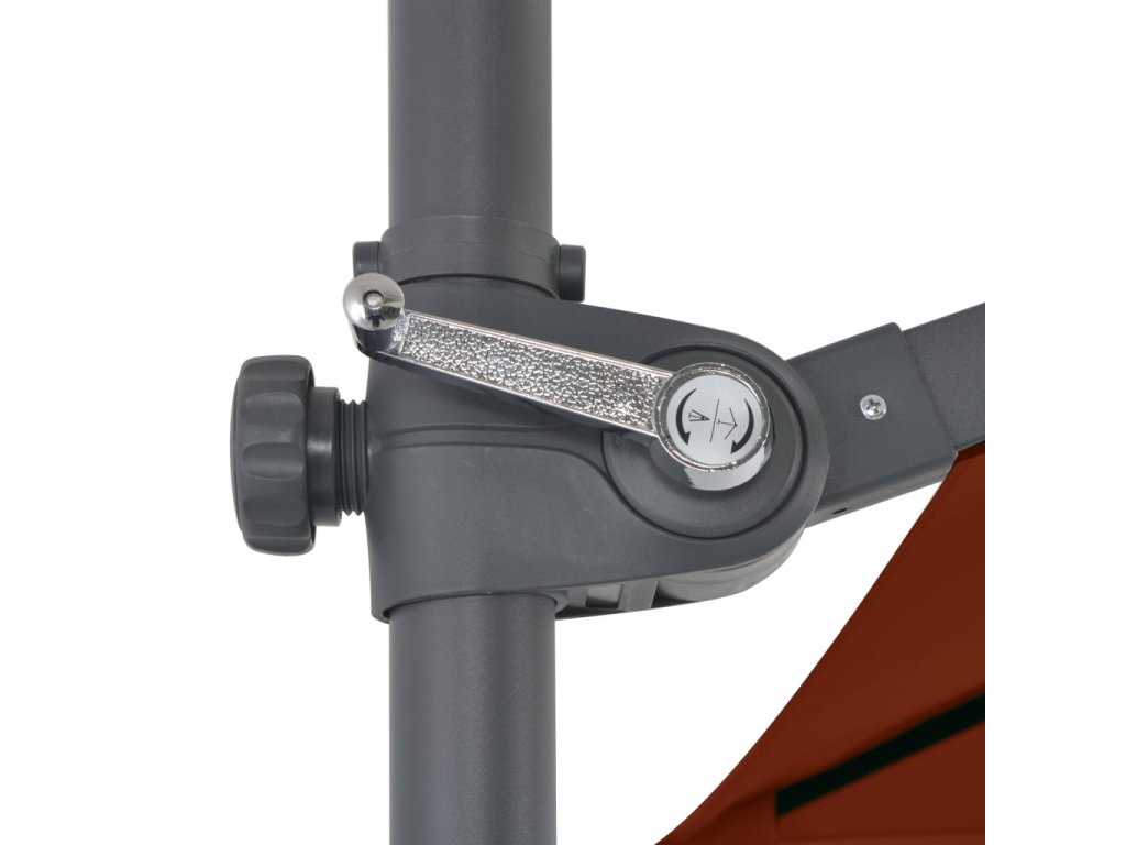 Stříška slunečníku je vyrobená z polyesterové tkaniny, která nebledne a nepropouští škodlivé UV záření, takže vám poskytne optimální ochranu před sluncem. Navíc se snadno čistí. Slunečník je vybavený křížovou základnou, která zaručuje lepší stabilitu. Exkluzivní konstrukce vám umožní ho naklánět a otáčet o 360 stupňů, aby optimálně blokoval slunce. Silná hliníková tyč s 8 odolnými žebry zajišťuje, že se slunečník nehýbe a hodně toho vydrží. Zahradní slunečník disponuje klikovým mechanismem, takže se snadno otevírá i zavírá.
