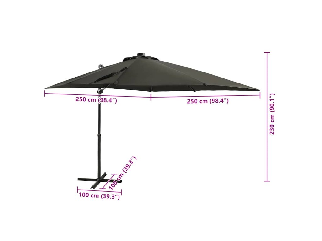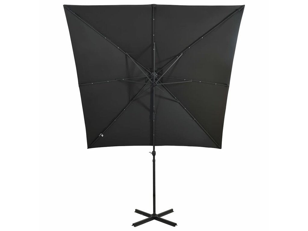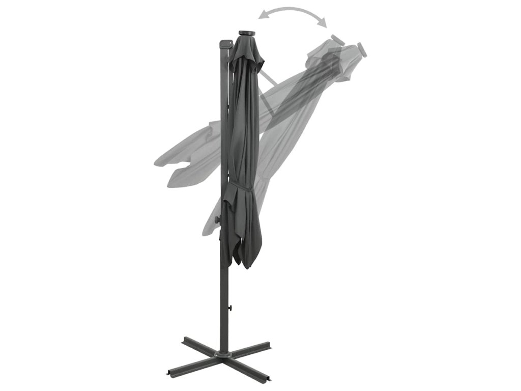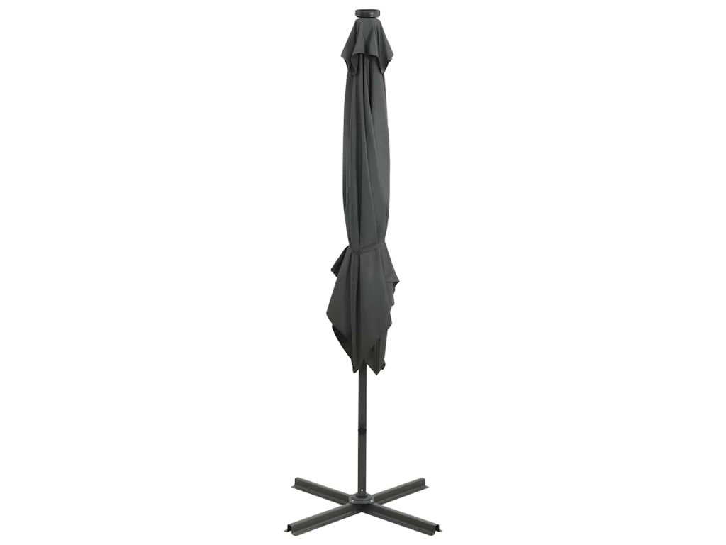 Boční zahradní slunečník s tyčí a LED světly antracitový 250 cm 312322