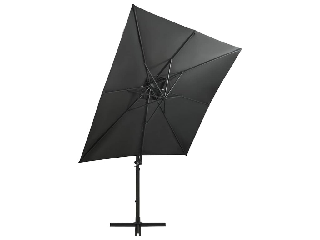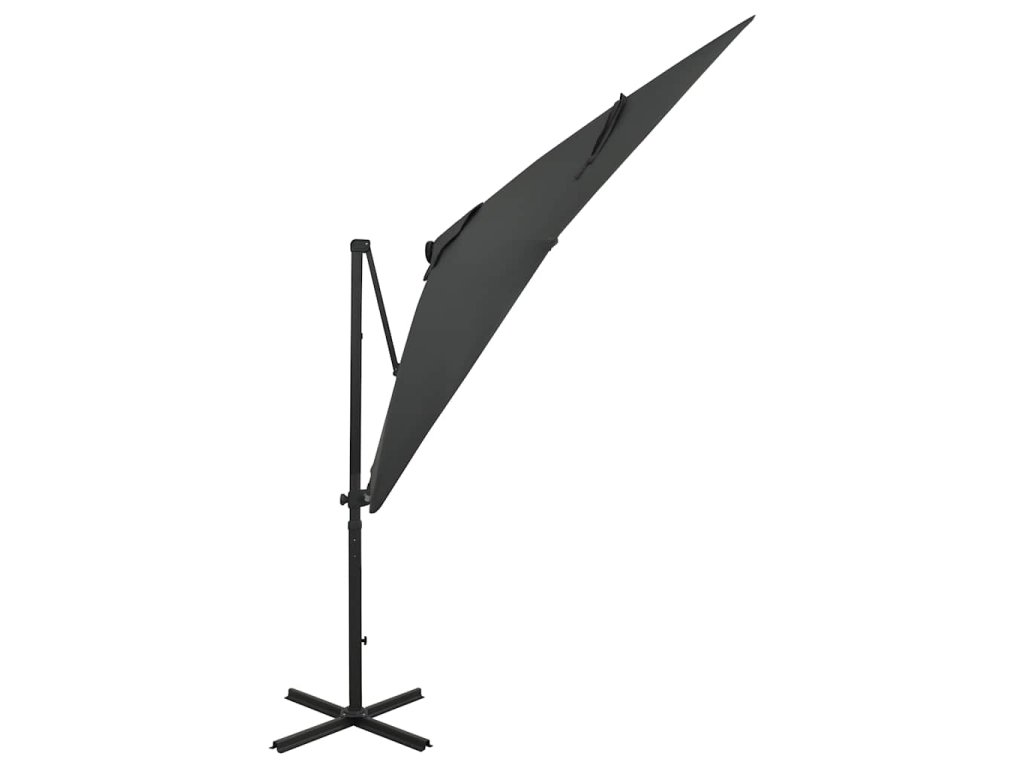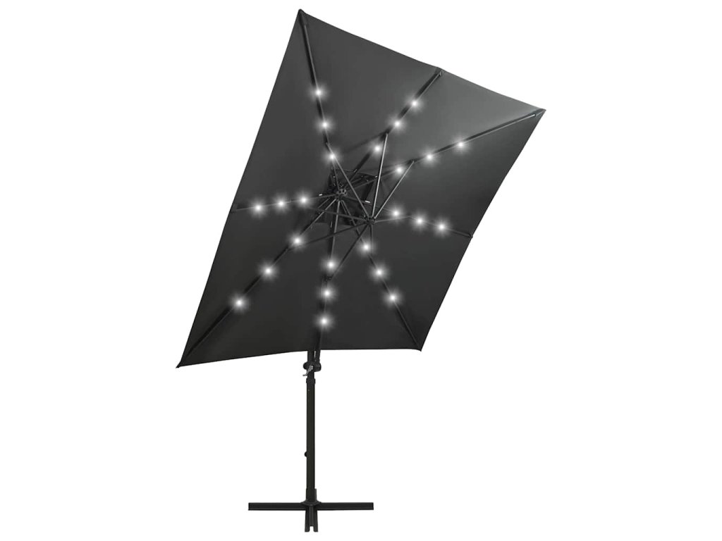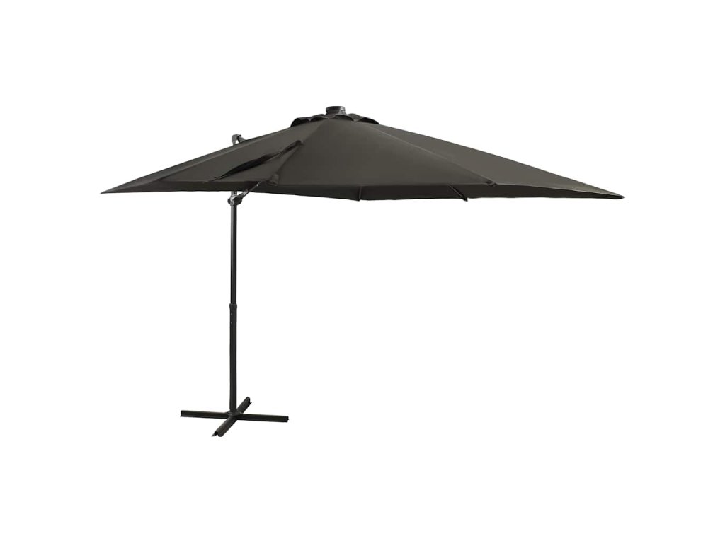Boční zahradní slunečník s tyčí a LED světly antracitový 250 cm 312322