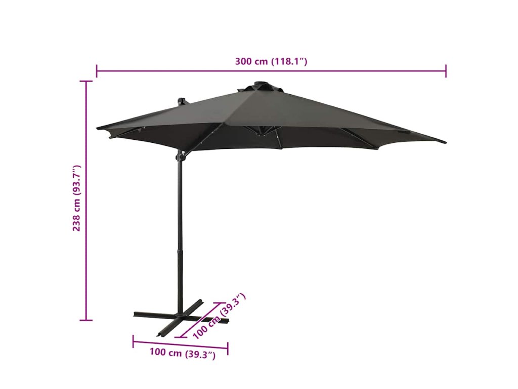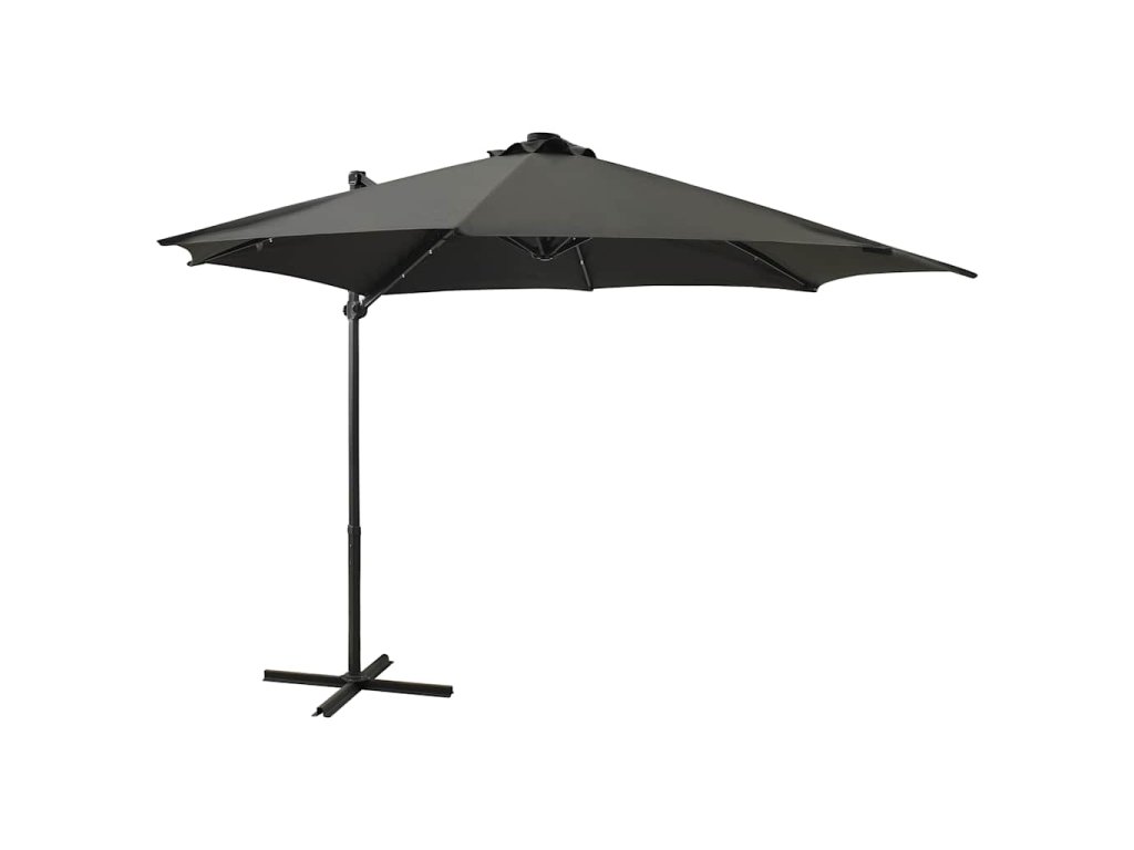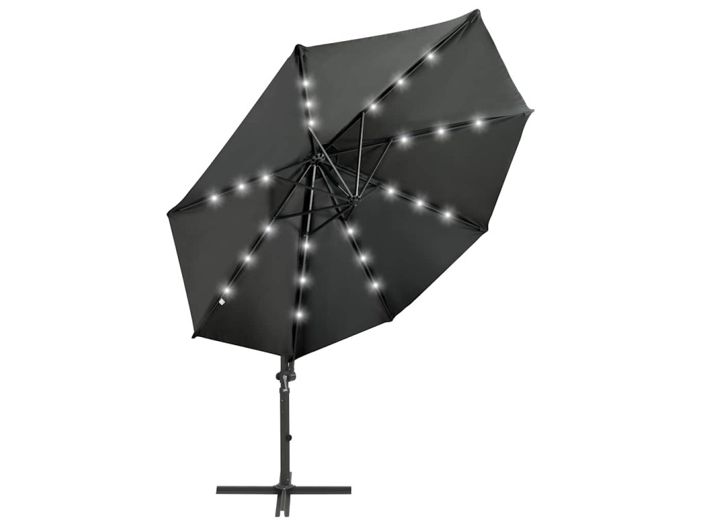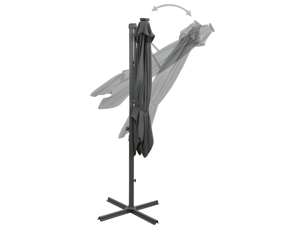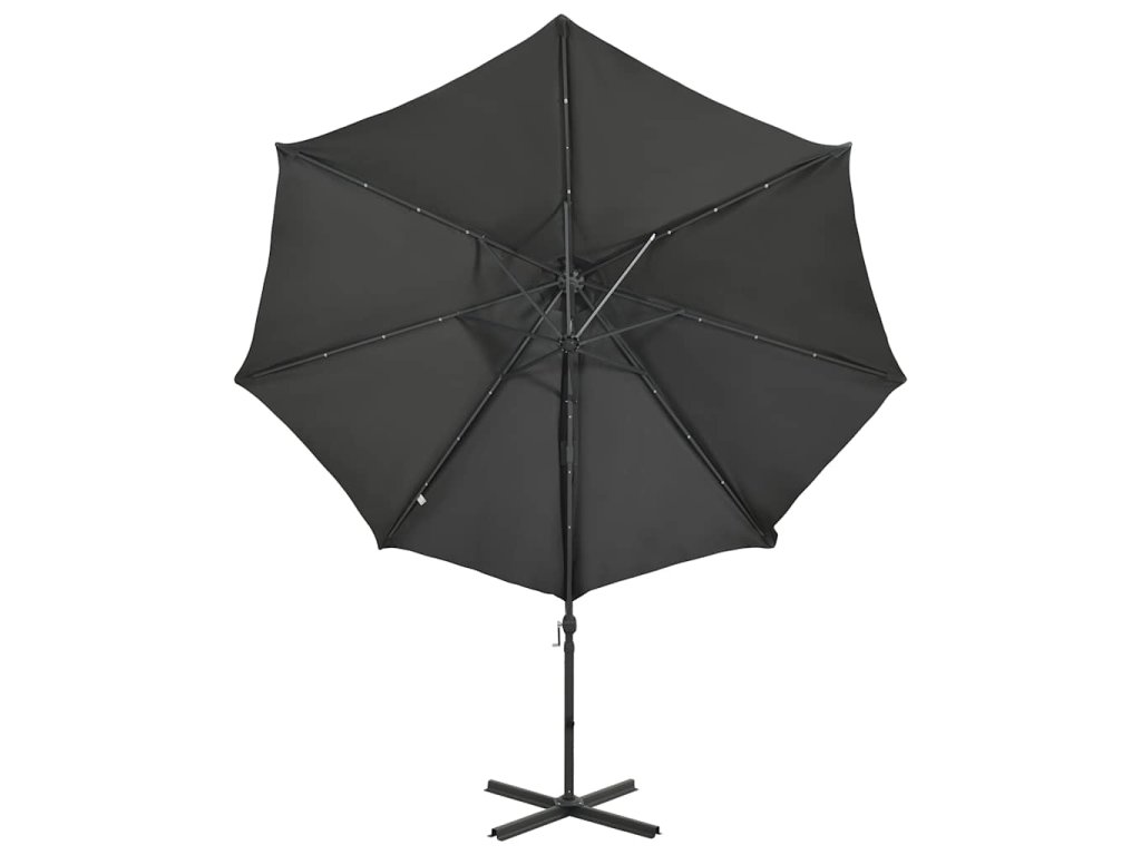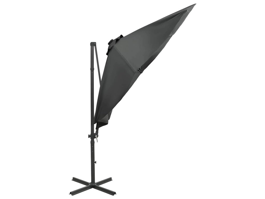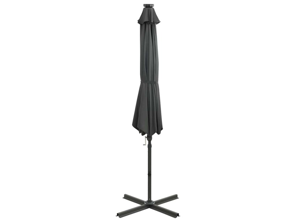 Boční zahradní slunečník s tyčí a LED světly antracitový 300 cm 312330