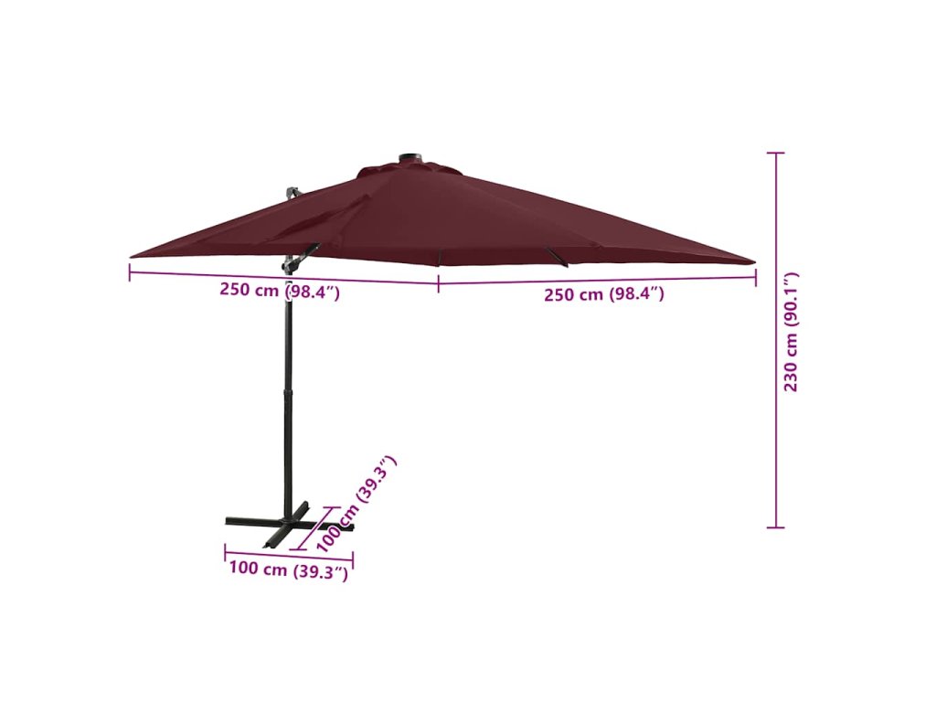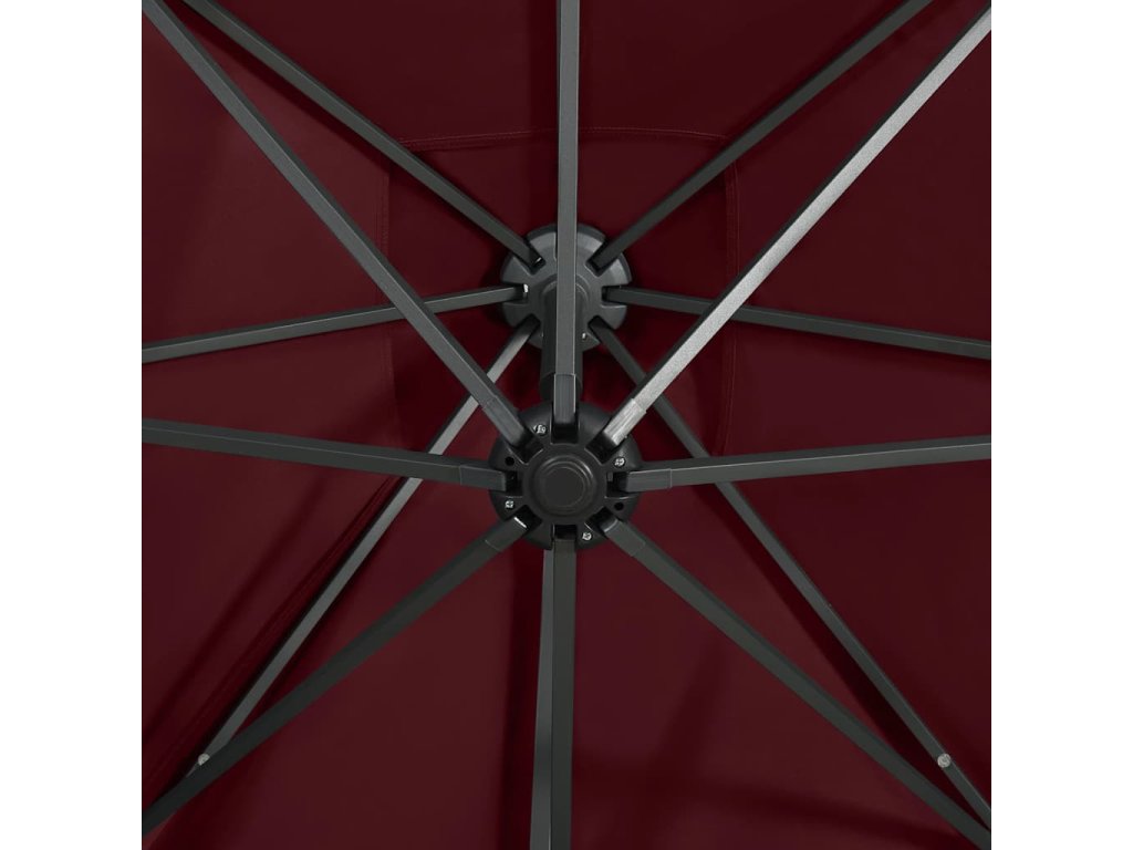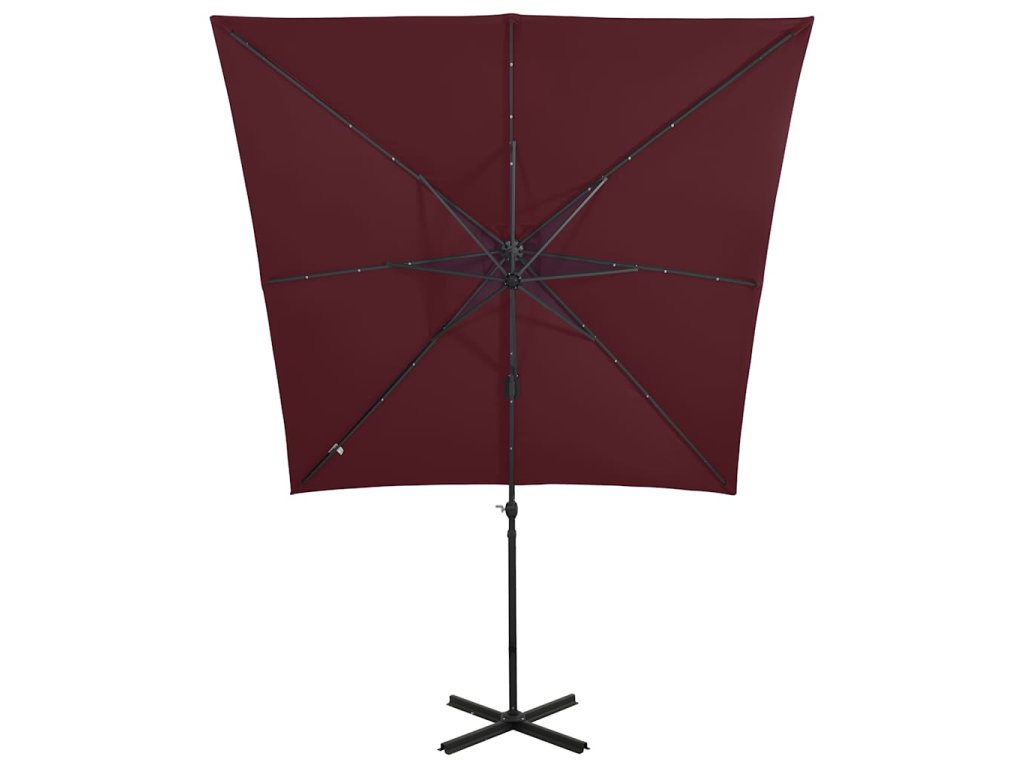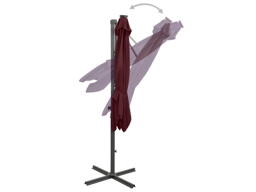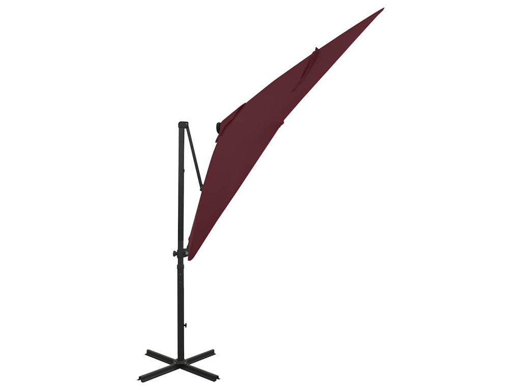 Boční zahradní slunečník s tyčí a LED světly bordó 250 cm 312326