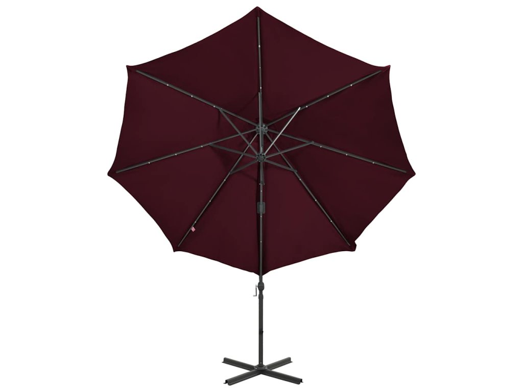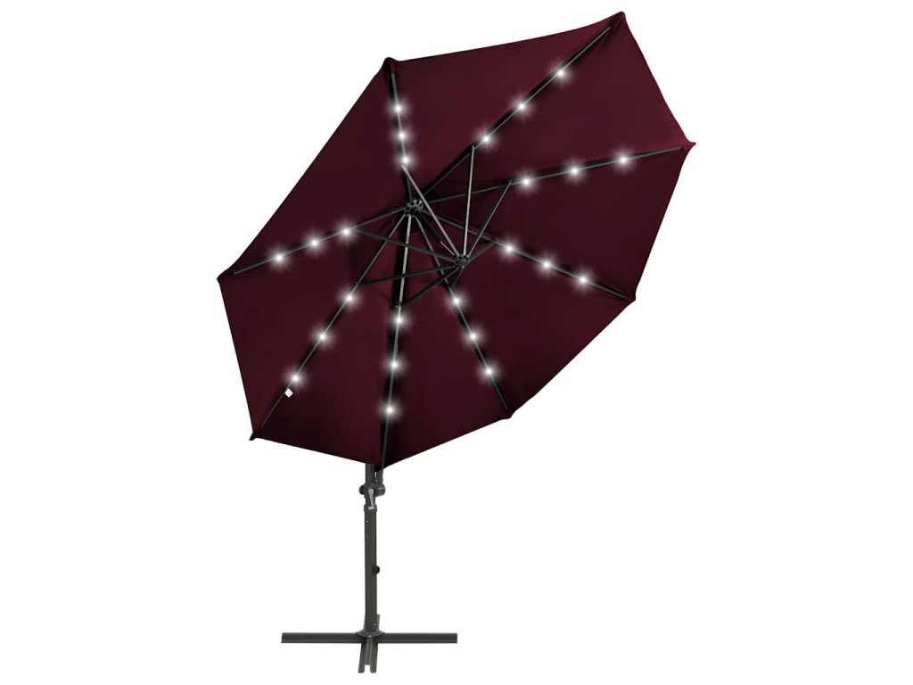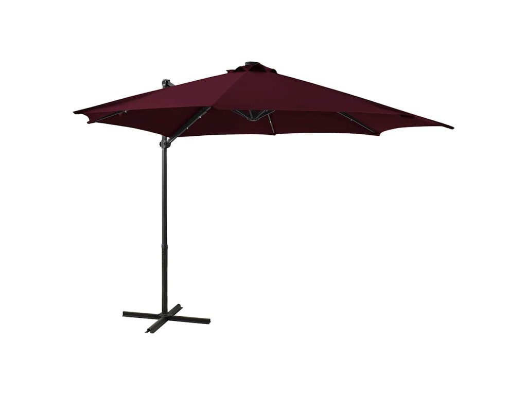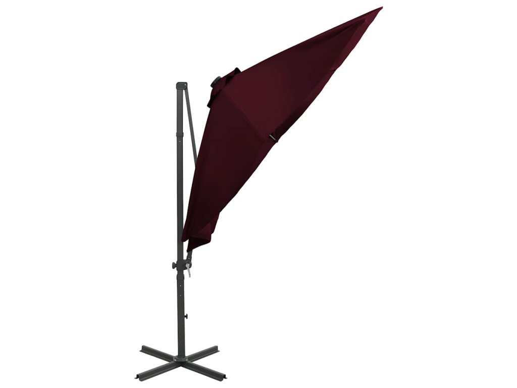 Boční zahradní slunečník s tyčí a LED světly bordó 300 cm 312334
