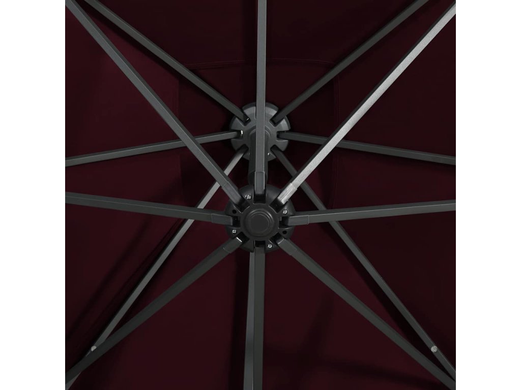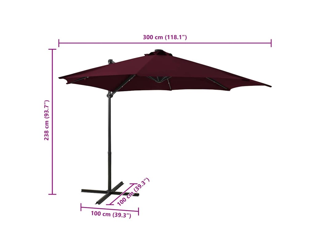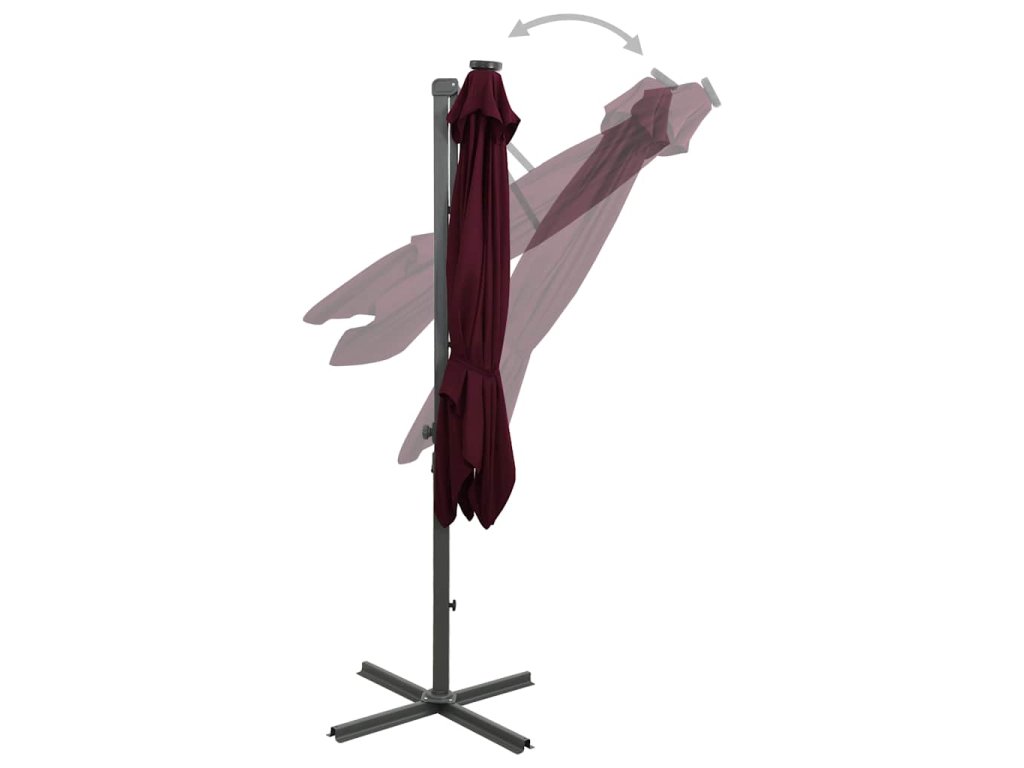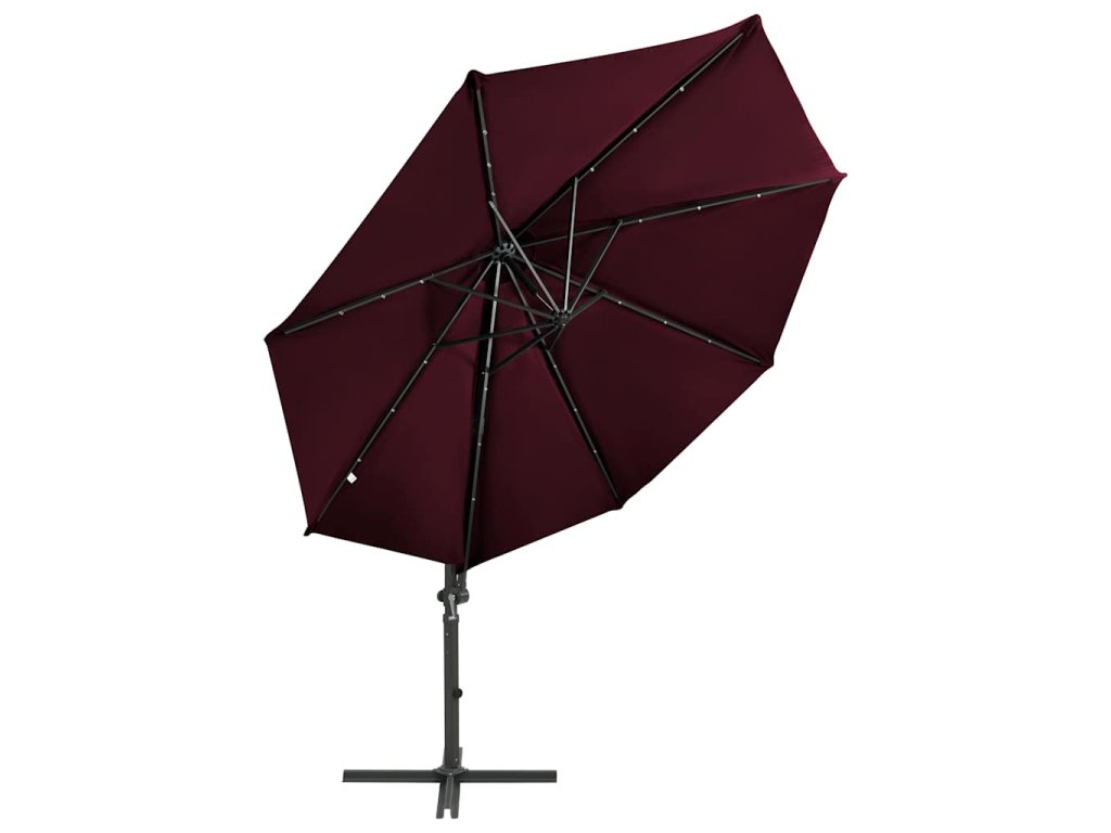 Boční zahradní slunečník s tyčí a LED světly bordó 300 cm 312334