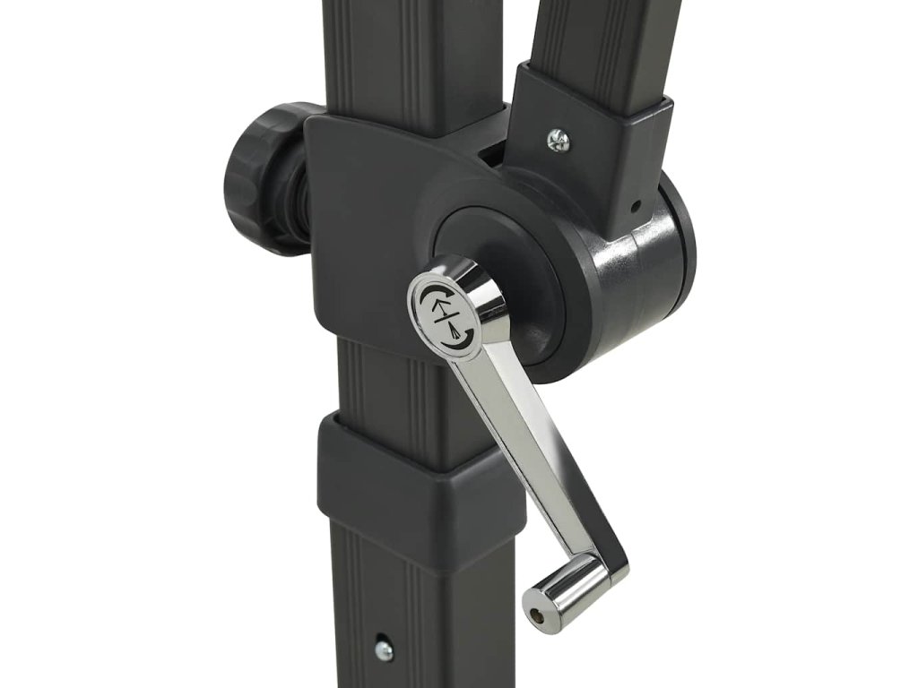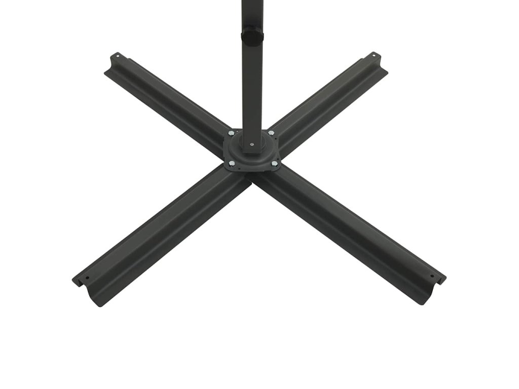 Potah slunečníku je vyrobený z neblednoucího polyesteru chránícího před UV zářením a poskytuje vám optimální ochranu před sluncem a snadno se čistí. Slunečník je vybaven pevnou křížovou základnou, která zaručuje lepší stabilitu. Exkluzivní konstrukce vám umožní zahradní slunečník naklánět a otáčet o 360 stupňů, aby blokoval slunce v jakémkoli úhlu. Silná hliníková tyč s 8 žebry slunečníku zajišťuje stabilitu a dlouhou životnost. Náš zahradní slunečník disponuje klikovým mechanismem, což znamená, že se snadno otevírá i zavírá. Terasový slunečník rovněž disponuje 24 LED světly, která po západu slunce osvětlí váš venkovní prostor a vytvoří romantickou atmosféru.