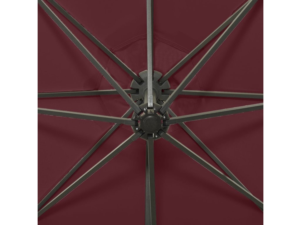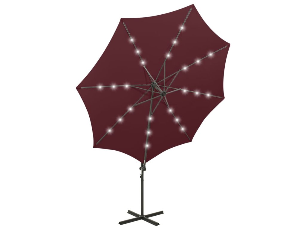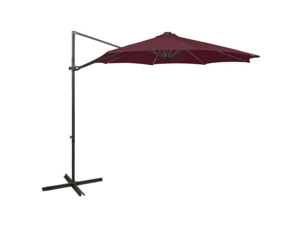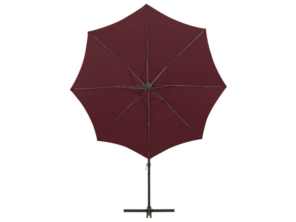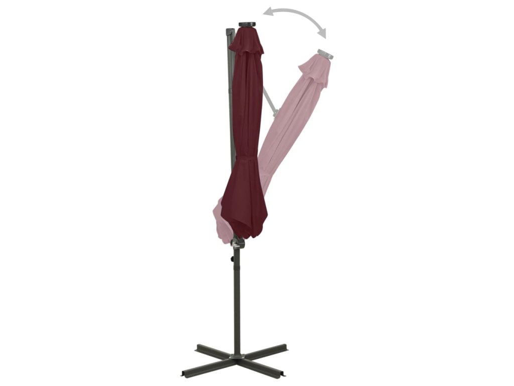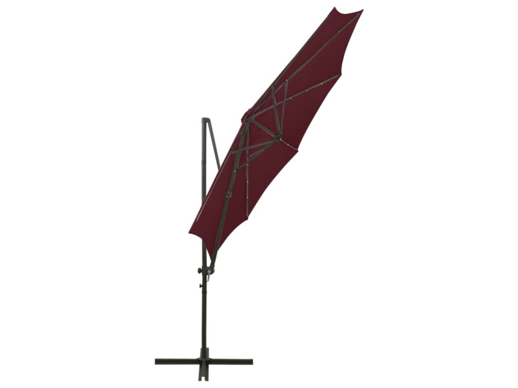 Boční zahradní slunečník s tyčí a LED světly bordó 300 cm 312342