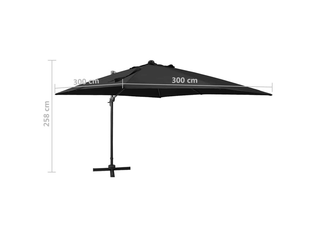 Tento elegantní boční zahradní slunečník s LED světly je skvělou volbou, která vám poskytne stín, a ochrání vás tak před sluníčkem a jeho škodlivým UV zářením. Když zapadne slunce, LED diody osvětlí váš venkovní prostor.