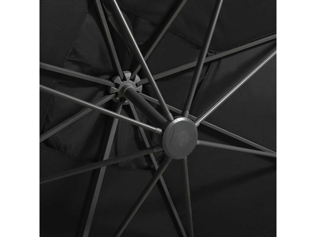 Potah slunečníku je vyrobený z neblednoucího polyesteru chránícího před UV zářením a poskytuje vám optimální ochranu před sluncem a snadno se čistí. Slunečník je vybaven pevnou křížovou základnou, která zaručuje lepší stabilitu. Exkluzivní konstrukce vám umožní zahradní slunečník naklánět a otáčet o 360 stupňů, aby blokoval slunce v jakémkoli úhlu. Silná hliníková tyč s 8 žebry slunečníku zajišťuje stabilitu a dlouhou životnost. Náš zahradní slunečník disponuje klikovým mechanismem, což znamená, že se snadno otevírá i zavírá. Terasový slunečník rovněž disponuje 24 LED světly, která po západu slunce osvětlí váš venkovní prostor a vytvoří romantickou atmosféru.