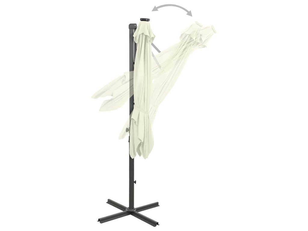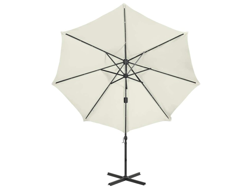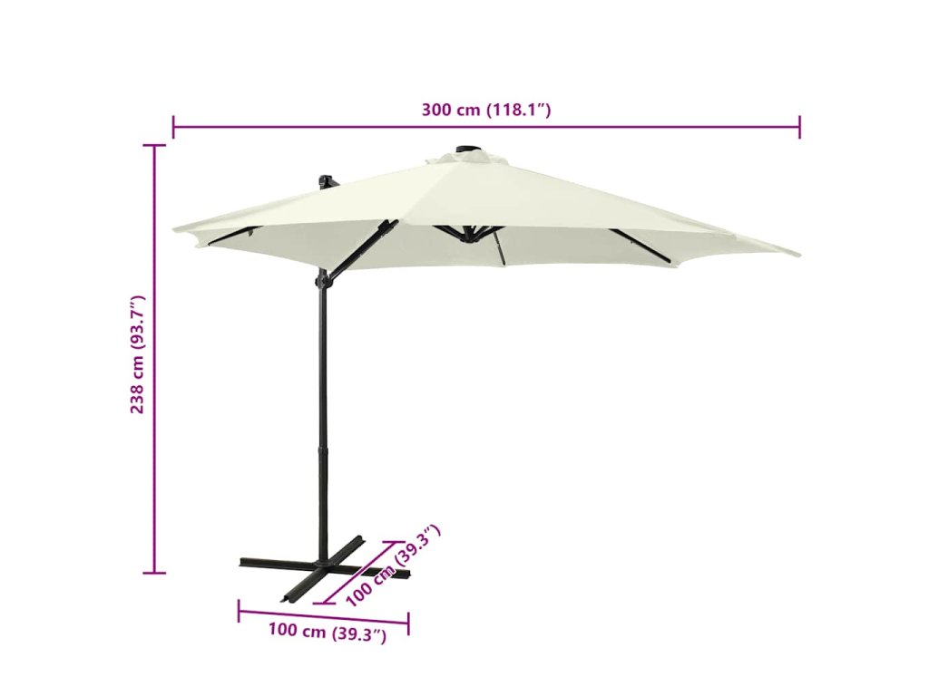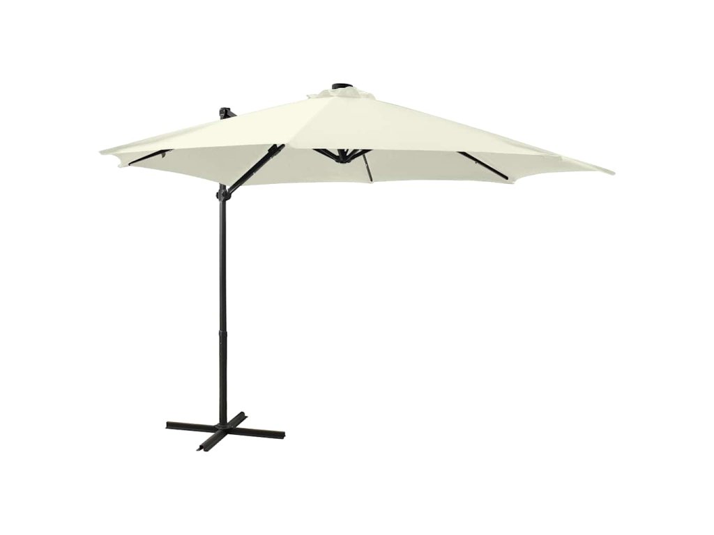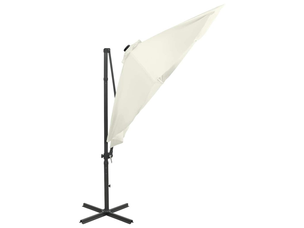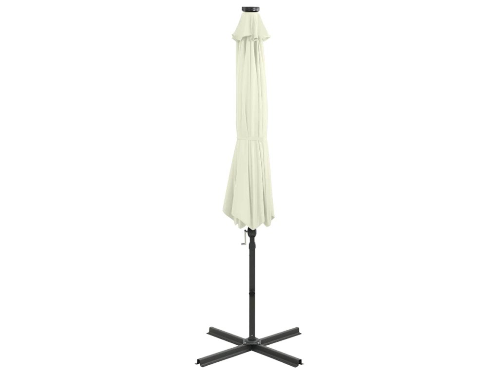 Boční zahradní slunečník s tyčí a LED světly pískový 300 cm 312328