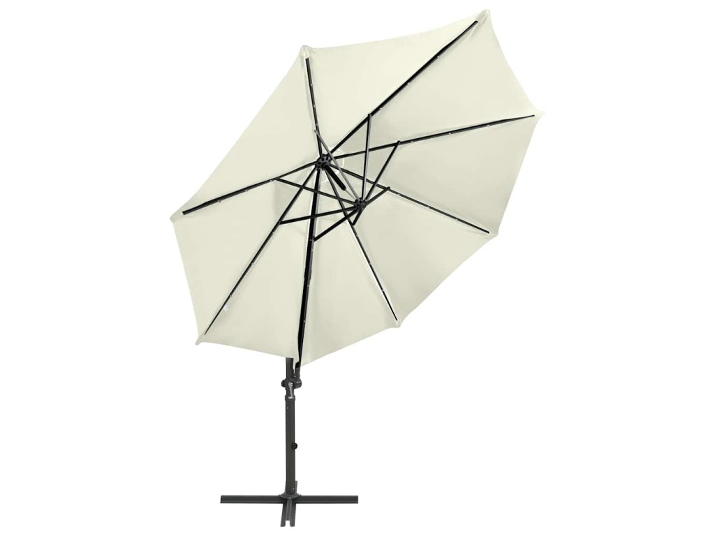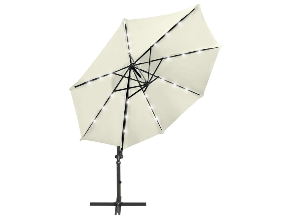 Tento elegantní boční zahradní slunečník s LED světly je skvělou volbou, která vám poskytne stín, a ochrání vás tak před sluníčkem a jeho škodlivým UV zářením. Když zapadne slunce, LED diody osvětlí váš venkovní prostor.