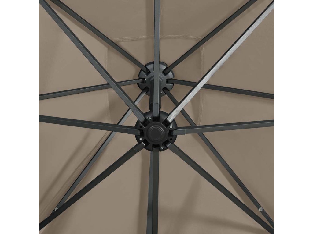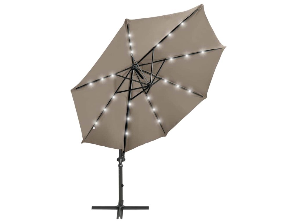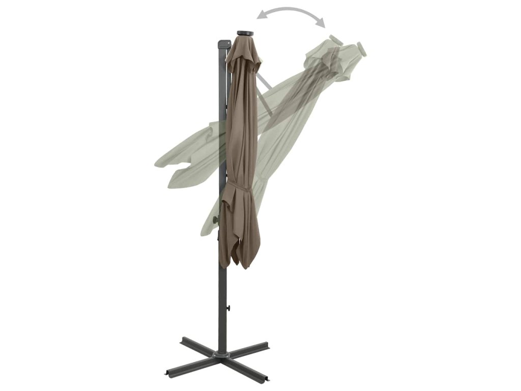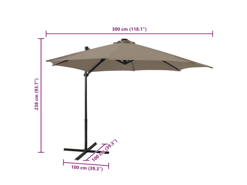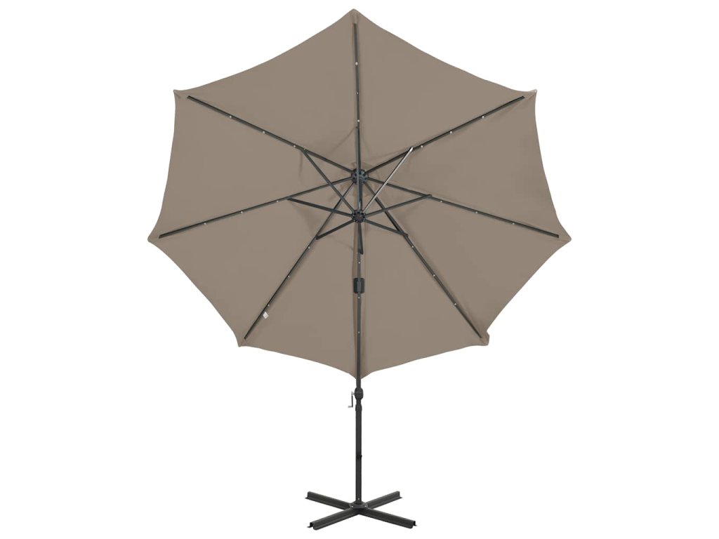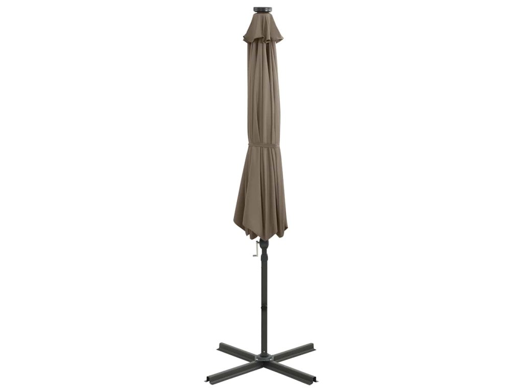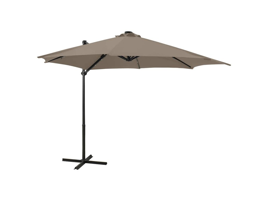 Boční zahradní slunečník s tyčí a LED světly taupe 300 cm 312331