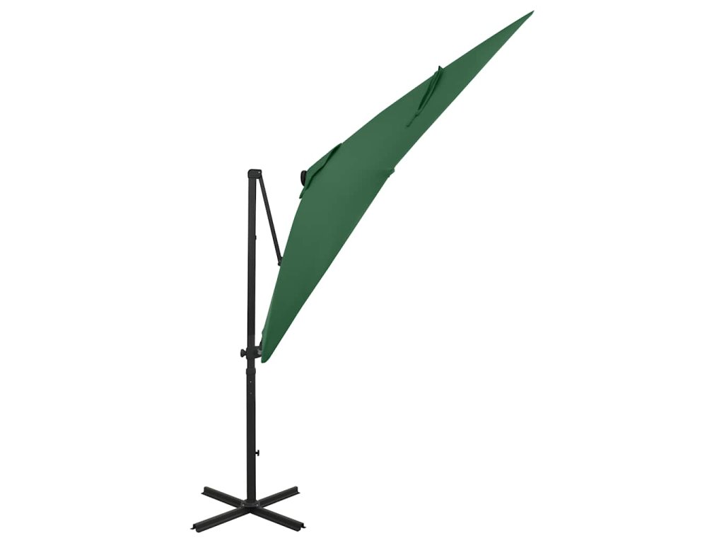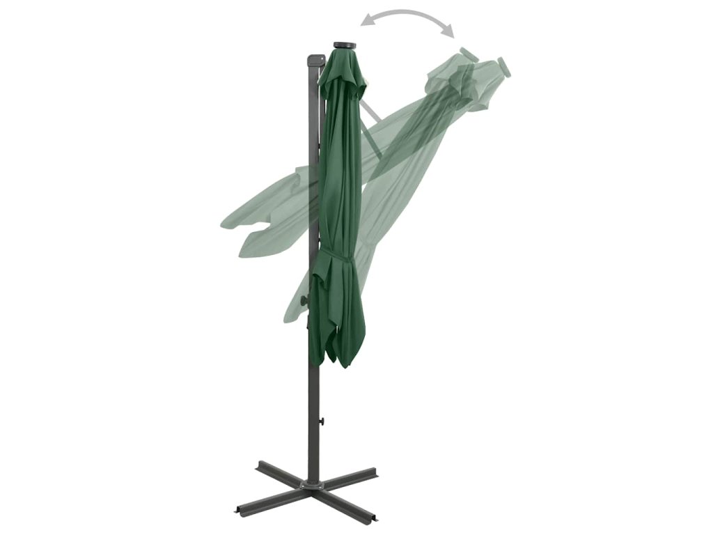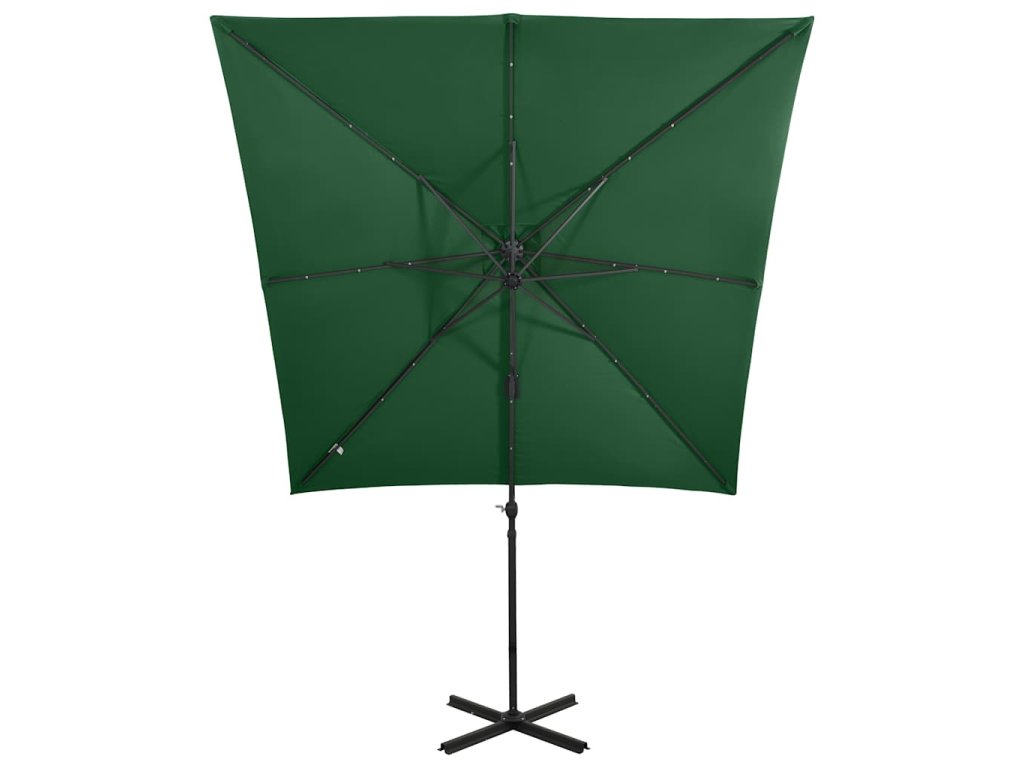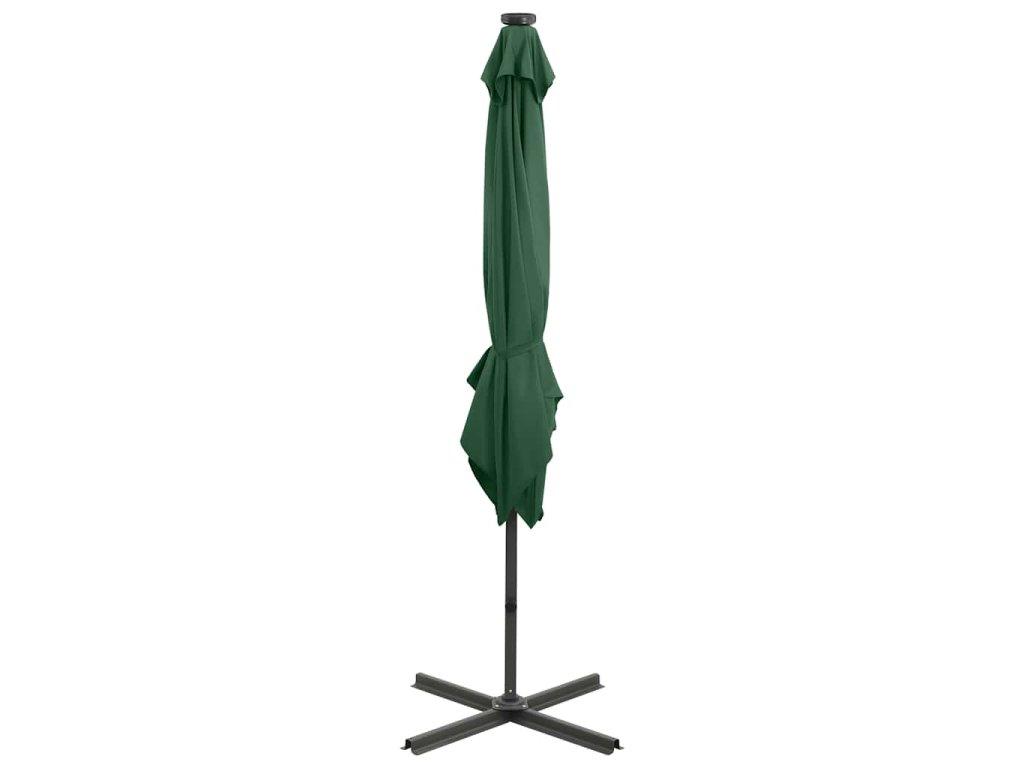 Boční zahradní slunečník s tyčí a LED světly zelený 250 cm 312321