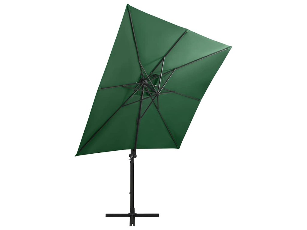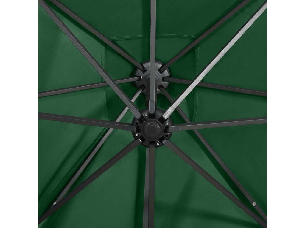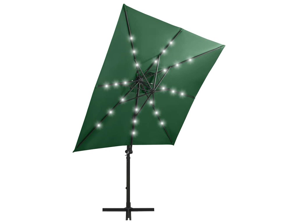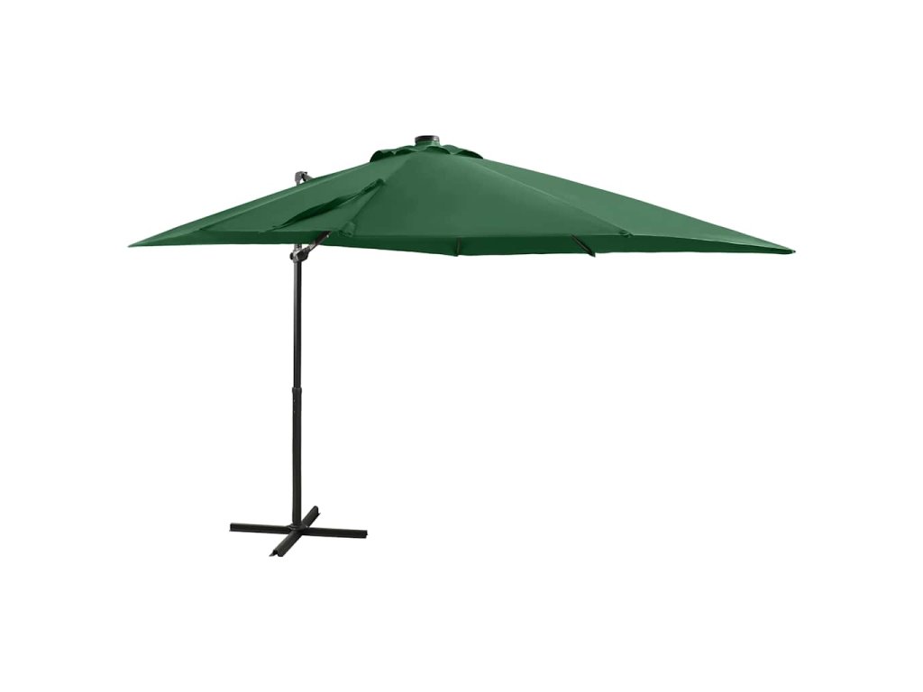 Boční zahradní slunečník s tyčí a LED světly zelený 250 cm 312321