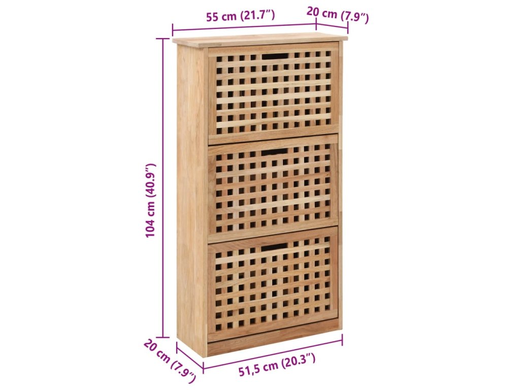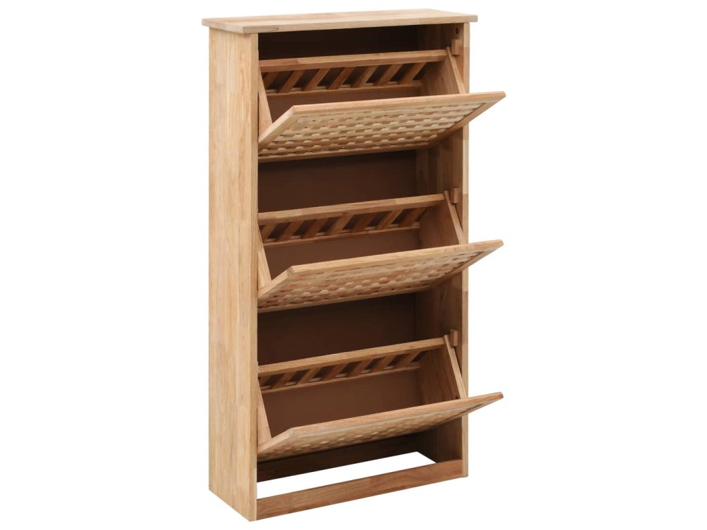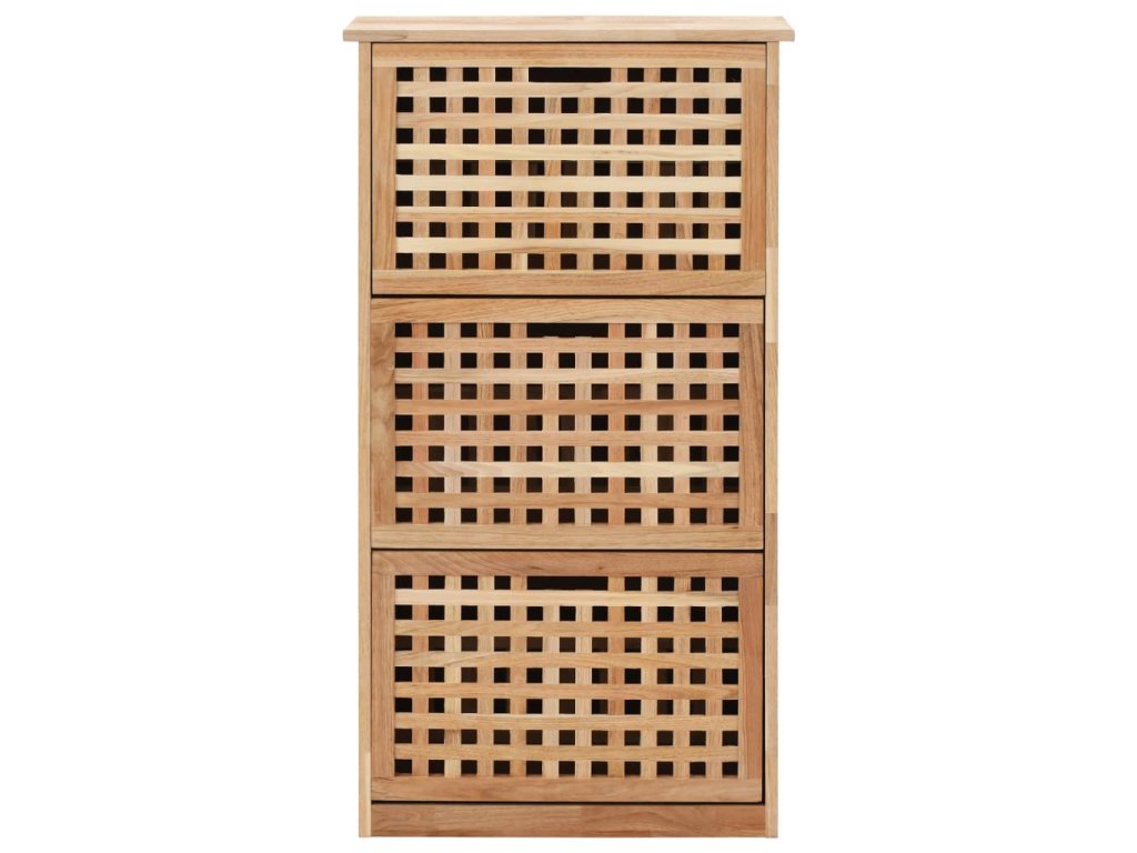 Botník má tři úložné přihrádky, které poskytují dostatek prostoru pro uložení až devíti párů bot. Botník je vyroben z masivního ořechového dřeva a překližky, takže je velmi robustní a odolný. Tato pevná skříňka do předsíně je velmi praktickým kusem nábytku, který vás zbaví rozházených bot v předsíni. Skříňka se snadno sestavuje.