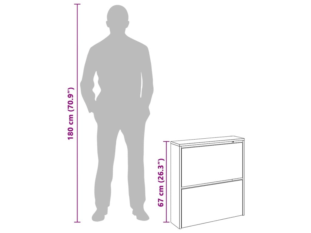 Tento zrcadlový botník má dvě vyklápěcí přihrádky, z nichž každá pojme 3 až 4 páry obuvi. Botník se montuje přímo na stěnu. Tato pevná a odolná předsíňová skříňka je vyrobena z vysoce kvalitního materiálu a je velmi praktickým kusem nábytku, kde můžete úhledně a stylově ukládat své boty, aby nebyly poházené po bytě.