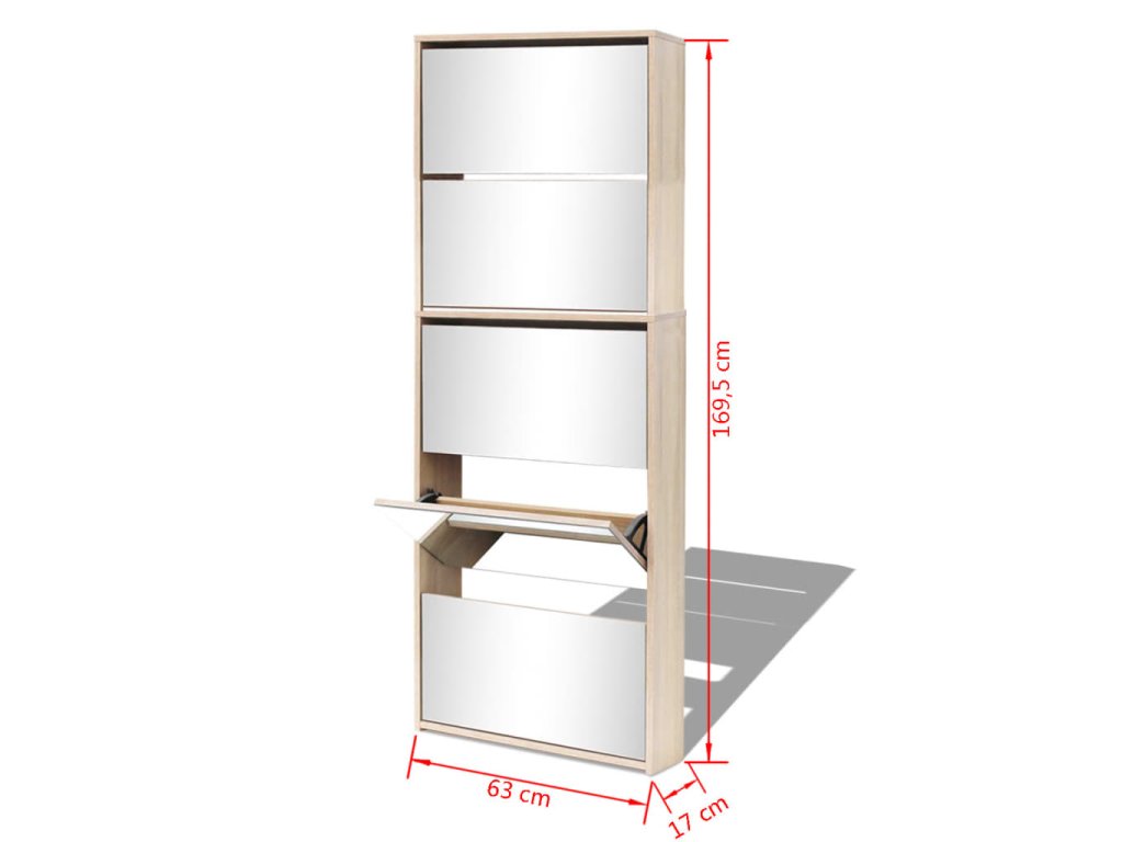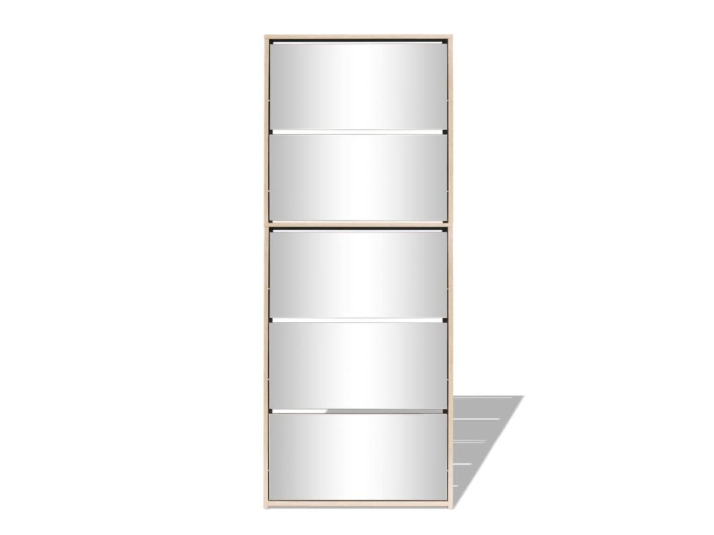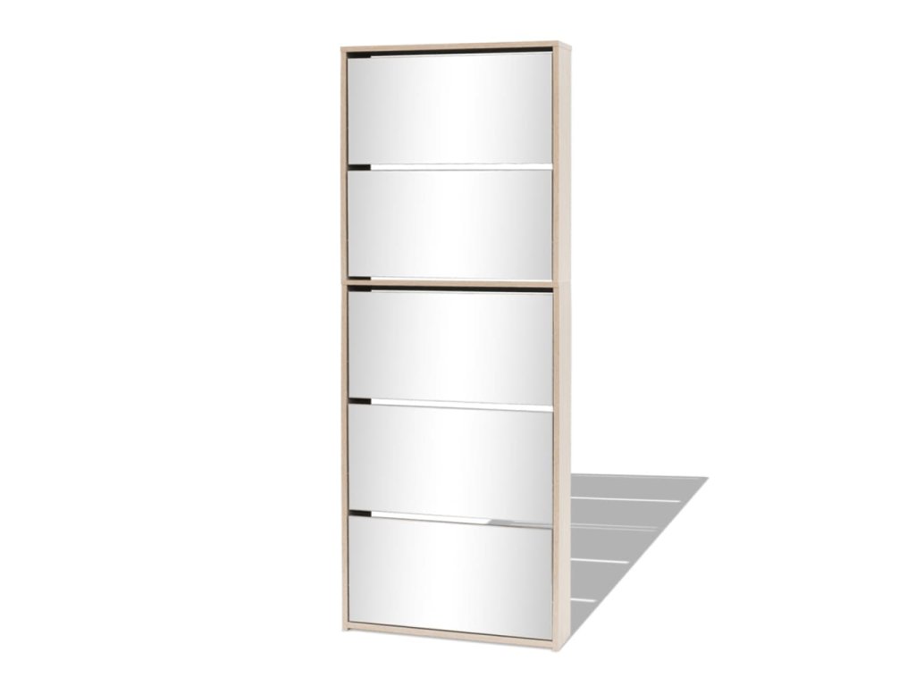 Tento zrcadlový botník má pět vyklápěcích přihrádek, z nichž každá pojme 3 až 4 páry obuvi. Botník se montuje přímo na stěnu. Tato pevná a odolná předsíňová skříňka je vyrobena z vysoce kvalitního materiálu a je velmi praktickým kusem nábytku, kde můžete úhledně a stylově ukládat své boty, aby nebyly poházené po bytě.