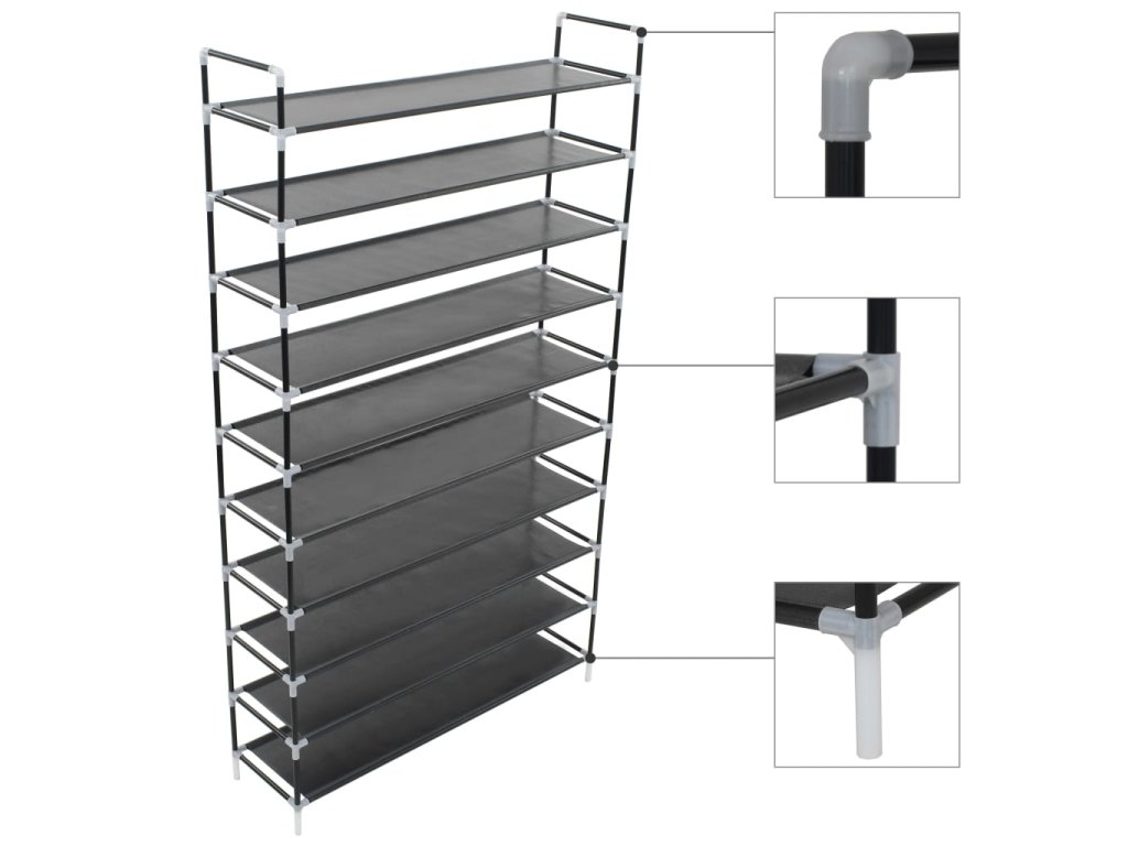 Má trubkový kovový rám, který je lehký, ale přitom robustní, lze jej tedy snadno přemisťovat a zároveň je i velmi stabilní. Má deset prostorných polic, vyrobených z netkané textilie, které vám poskytnou spoustu prostoru pro přehledné ukládání vašich bot tak, aby vám nepřekážely.