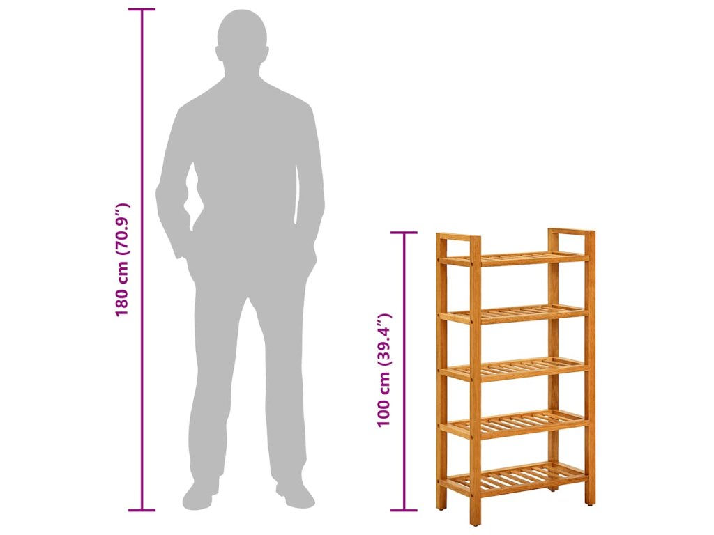 Botník s 5 policemi 50 x 27 x 100 cm masivní dubové dřevo 331747