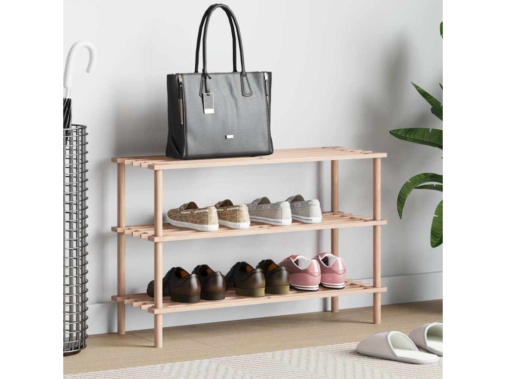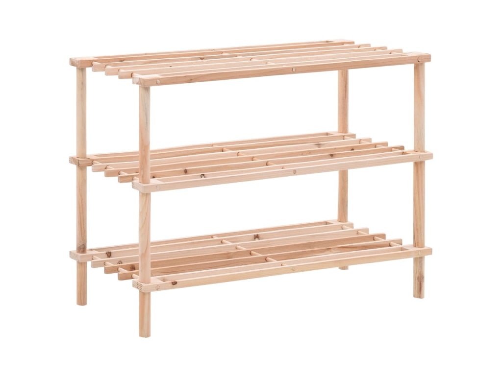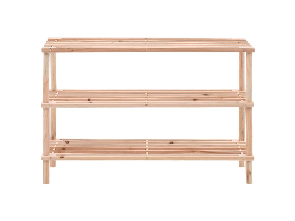 Do tohoto dřevěného botníku se 3 policemi si snadno a přehledně uložíte všechny své oblíbené boty, které už nemusí ležet poházené po podlaze. Botník můžete umístit ideálně poblíž vchodových dveří nebo kdekoliv chcete boty uschovat.