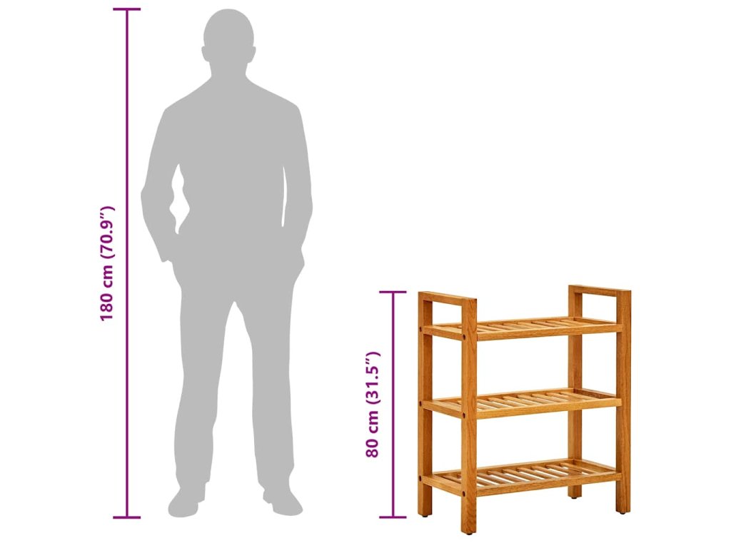 Tento dřevěný botník byl precizně vyroben z odolného masivního dubu a je velmi funkční. Vzhledem ke svému kompaktnímu designu a rukojetím zabere jen velmi málo místa a dá se snadno přemisťovat. Otevřené police jsou ideální pro dobré větrání vašich bot. S tímto botníkem už se nebudete muset rozčilovat, že máte boty rozházené po celém domě.