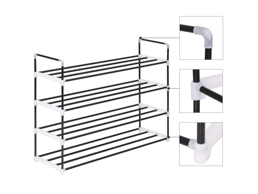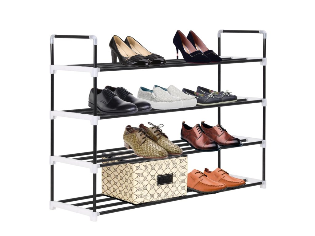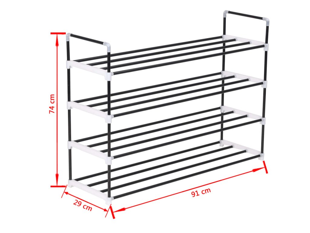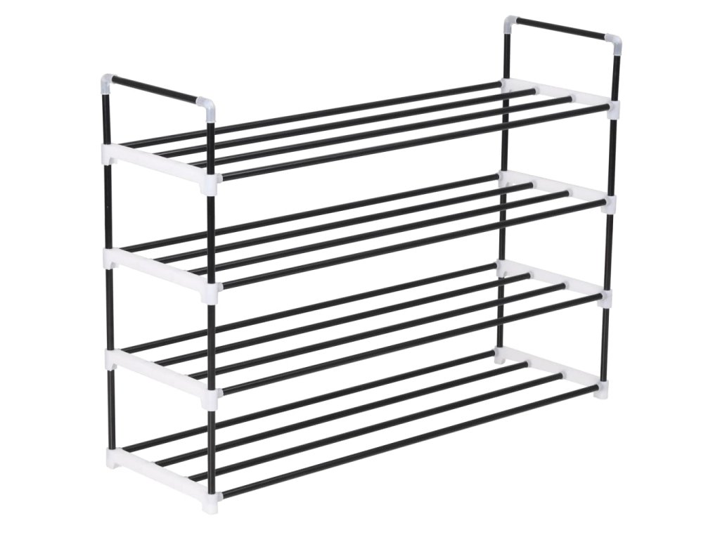 Disponuje lehkým kovovým trubkovým rámem, botník se dá tedy snadno přesouvat, zároveň je ale také velmi odolný. Má čtyři prostorné police, které vám poskytnou spoustu prostoru, kam si můžete uložit vaše boty tak, aby vám nepřekážely.