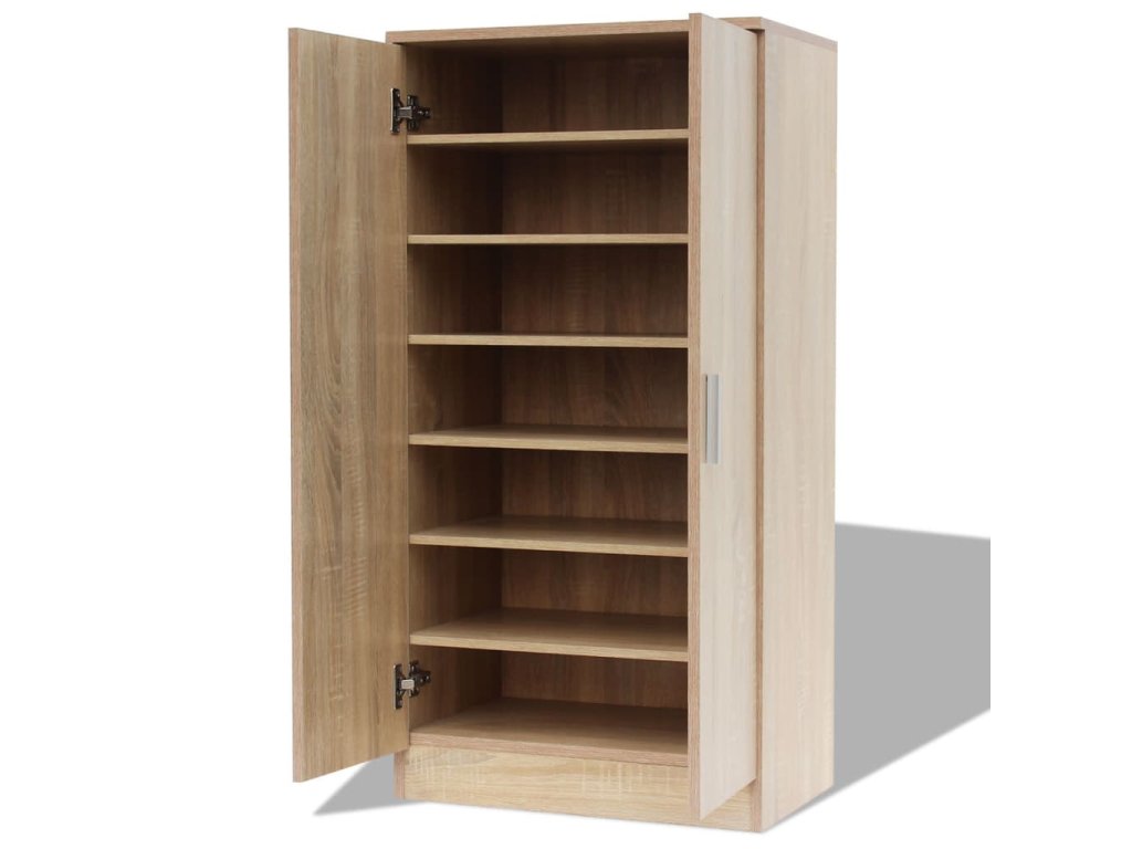 Tento botník má 7 přihrádek za dvoukřídlými dvířky, z nichž každá pojme 2 páry obuvi, takže do botníku se vejde celkem 14 párů. Tato pevná a odolná skříňka do předsíně je vyrobena z vysoce kvalitních materiálů, takže je velmi praktickým místem pro úhledné a stylové ukládání vaší obuvi.