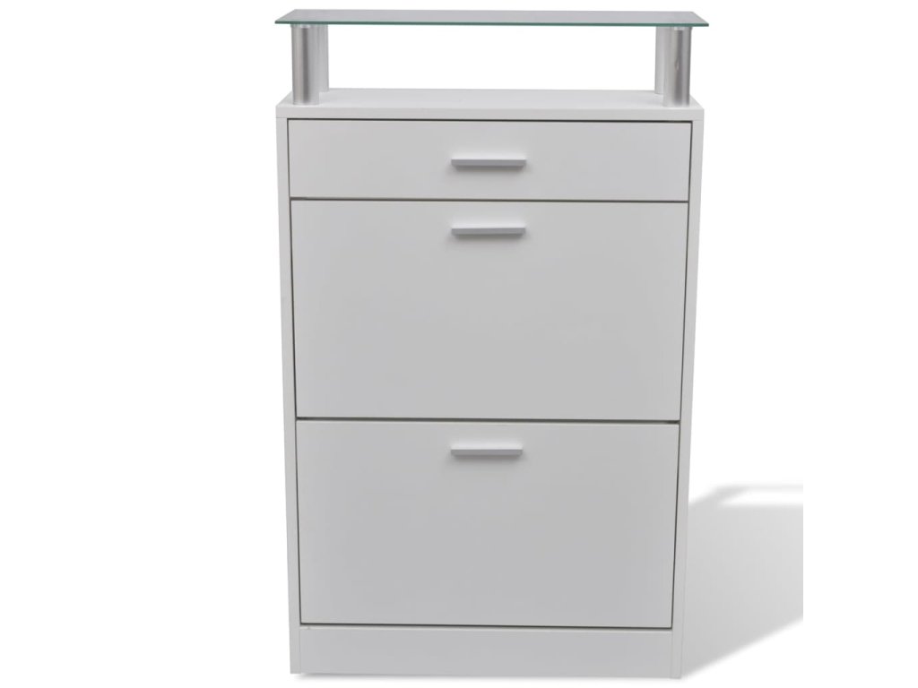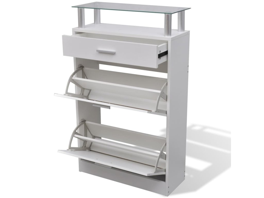 - S 2 velkými přihrádkami na uložení bot, 1 zásuvkou a 1 horní skleněnou policí