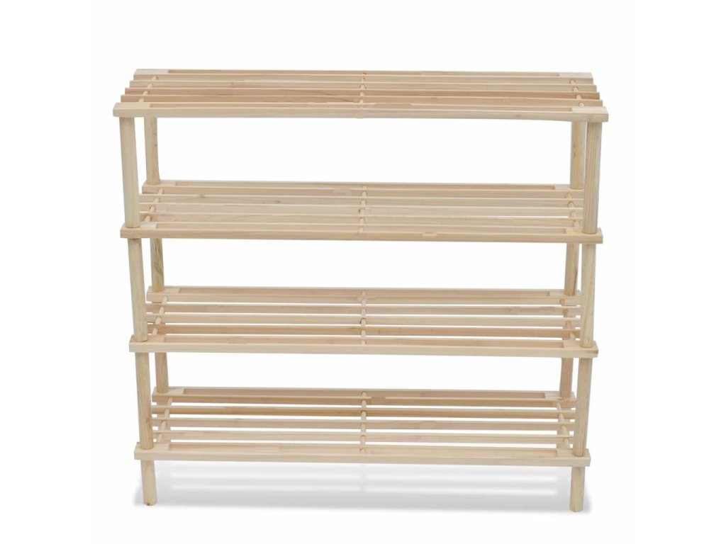 Do tohoto dřevěného botníku se 4 policemi si snadno a přehledně uložíte všechny své oblíbené boty, které už nemusí ležet poházené po podlaze. Botník můžete umístit ideálně poblíž vchodových dveří nebo kdekoliv chcete boty uschovat.