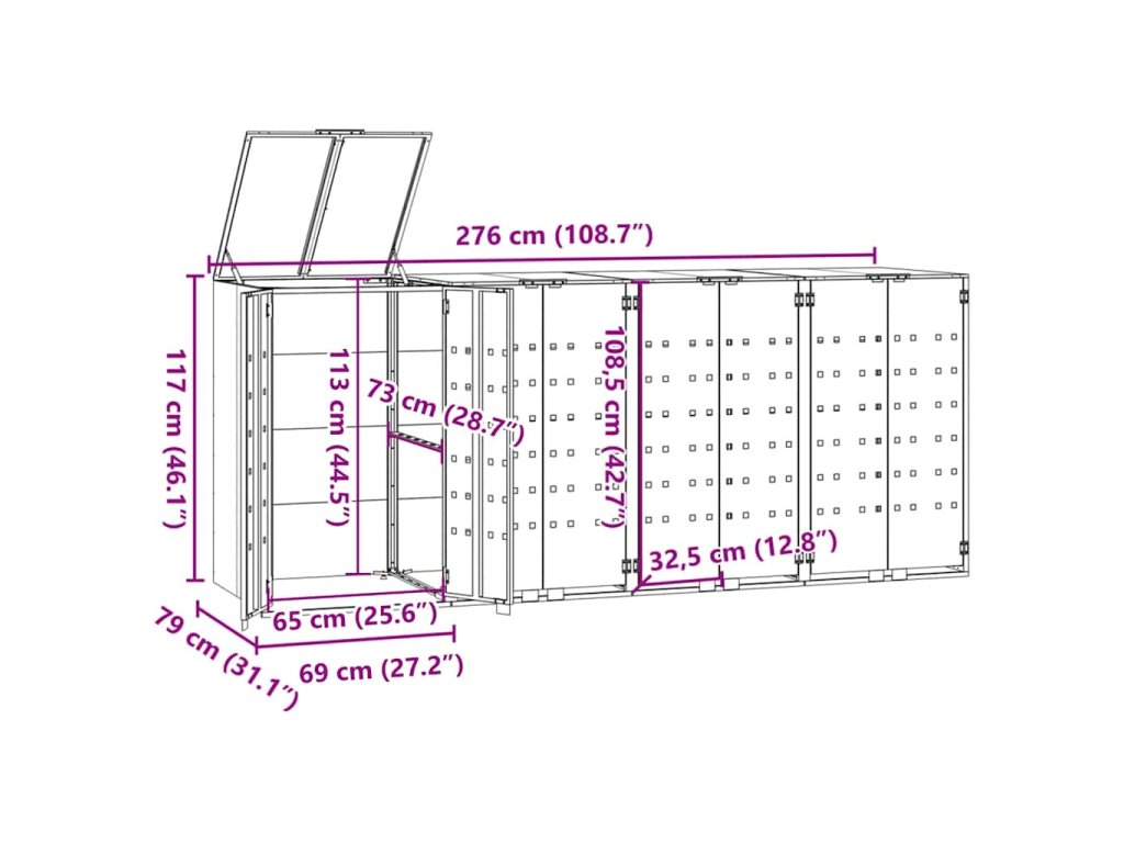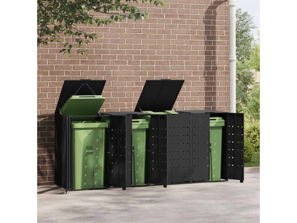 Box na 4 popelnice černý 276 x 79 x 117 cm ocel 3279979
