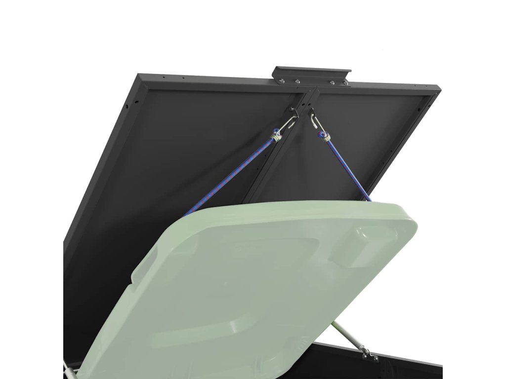 - Praktický mechanismus víka: Plynová pružina víka je opatřena gumovou šňůrou, která spojuje víko popelnice s víkem boxu, takže se víko popelnice automaticky otevře, když zvednete víko boxu.