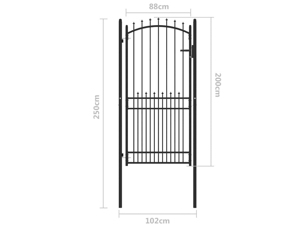 Brána s hroty Černá 100 x 200 cm Práškově lakovaná ocel 146402