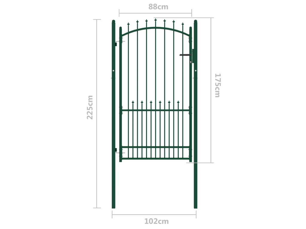 Brána s hroty Zelená 100 x 175 cm Práškově lakovaná ocel 146396