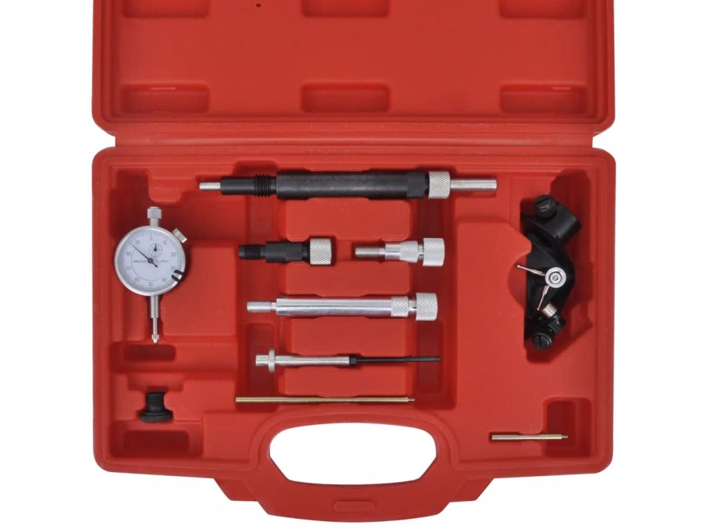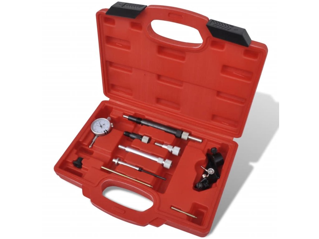 Časovací sada na naftové vstřikovací čerpadla . Hodí se na čerpadla typu Bosch , VE, Kiki , Lucas , CAV - Rotodiesel , NiponDenso . Vyrobena z velmi kvalitního materiálu a proto velmi trvanlivá. Sada je dodávána v tvarovaném kufříku , aby se snadno převážela a skladovala .