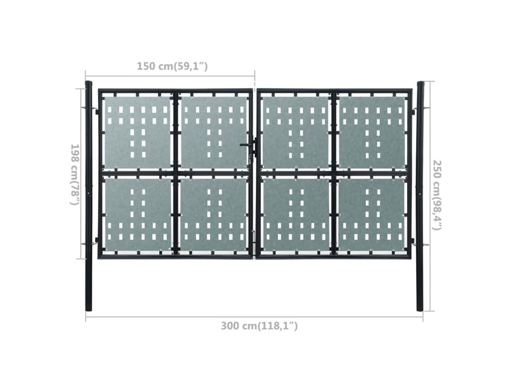 Pozinkované pláty s dekorativním dírkovaným vzorem jsou zesíleny rámem, takže vaší zahradě bude branka poskytovat vysoký stupeň bezpečí, a zároveň vytvářet úžasný vstup na váš pozemek. Je vyrobená z vysoce odolné oceli a opatřená práškovým nástřikem proti rzi a korozi.