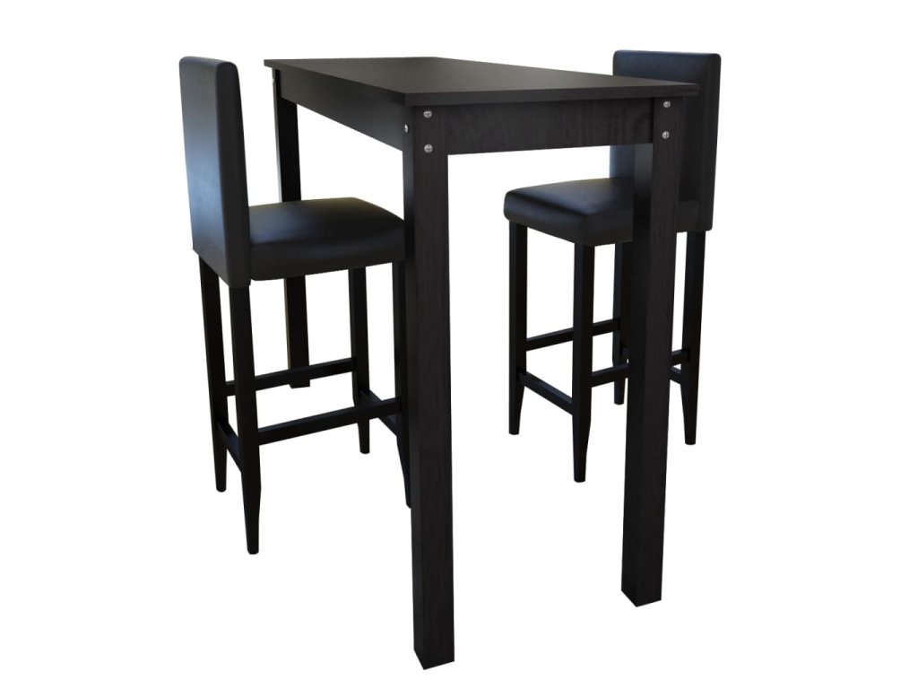 Tato jídelní souprava, která se skládá z obdélníkového barového stolu a 2 odpovídajících polstrovaných barových židlí, je ideální pro malé byty nebo tam, kde je trochu méně místa. Jeho moderní design z něj dělá elegantní doplněk do každé kuchyně nebo jídelny. Robustní stolní deska z MDF a odolná syntetická kůže sedadel se snadno čistí otřením.