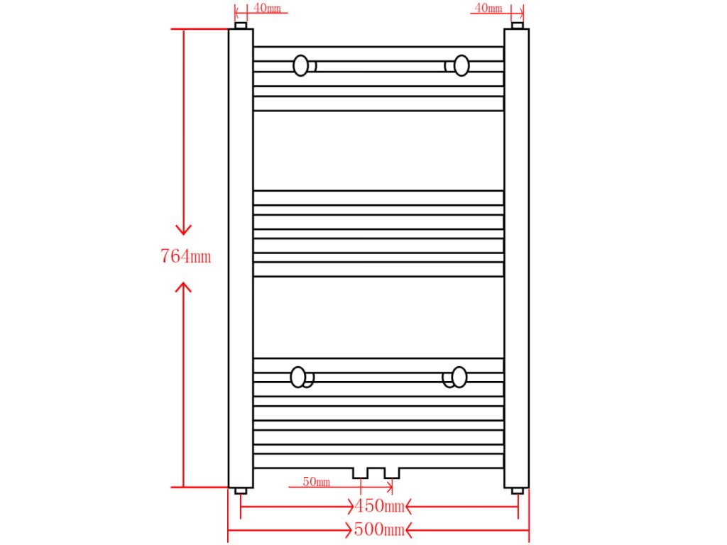 Vzhledem k systému cirkulace horké vody, který nevyžaduje připojení k elektrické síti, budou vaše ručníky suché v mžiku. Žebříkový radiátor má 12 ocelových trubek o průměru 22 mm a je natřený černou barvou. Příčné trubky jsou extra silné, a vydávají tak velké množství tepla. Na horním i dolním konci je radiátor opatřen přípojkami na vodu pro optimální proudění vody.