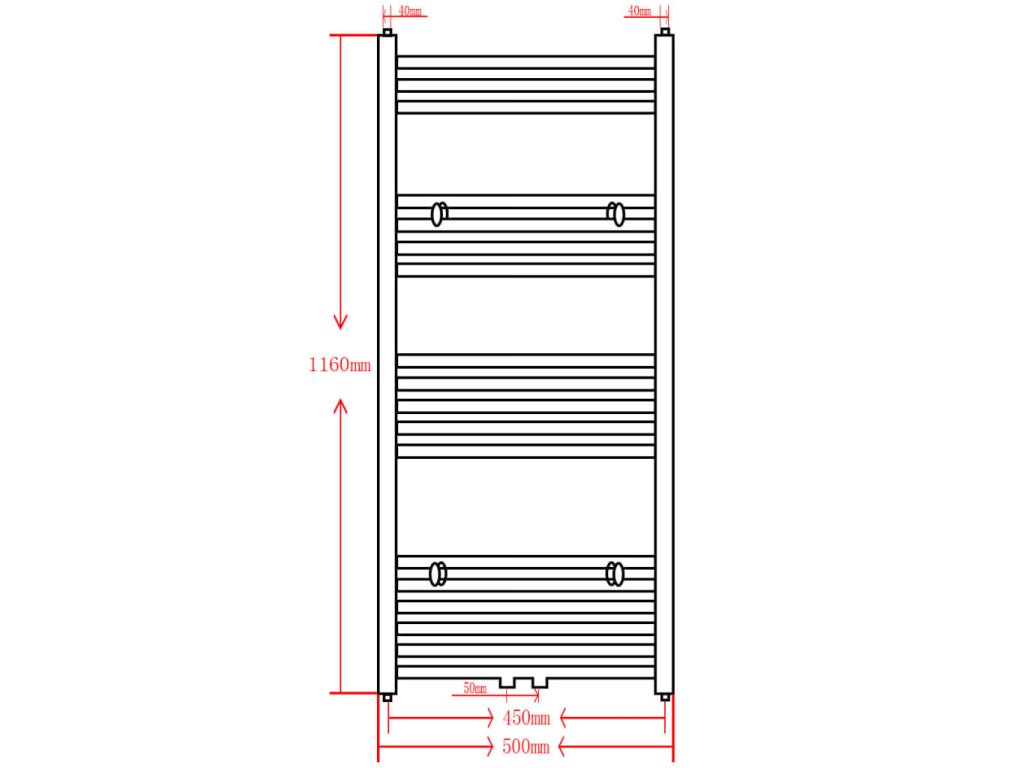 Černý žebříkový radiátor na ručníky rovný ústřední topení 500x1160 mm 141907