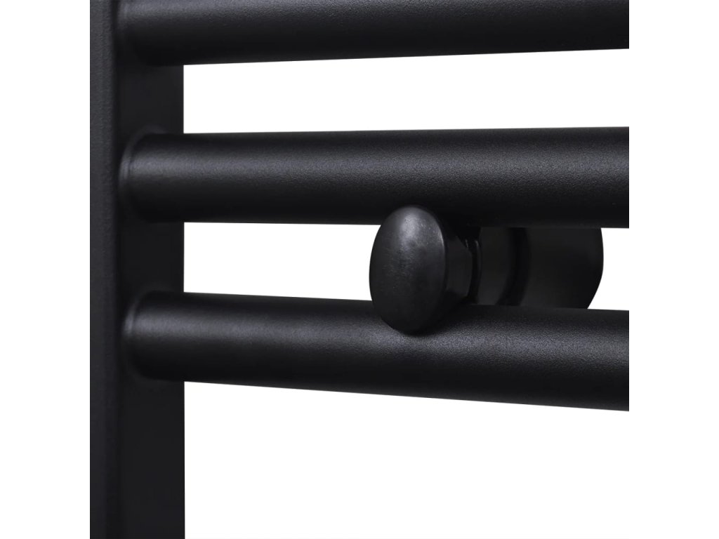 Vzhledem k systému cirkulace horké vody, který nevyžaduje připojení k elektrické síti, budou vaše ručníky suché v mžiku. Žebříkový radiátor má 12 ocelových trubek o průměru 22 mm a je natřený černou barvou. Příčné trubky jsou extra silné, a vydávají tak velké množství tepla. Na horním i dolním konci je radiátor opatřen přípojkami na vodu pro optimální proudění vody.