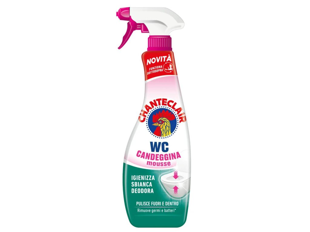 Chlórový čistič toalet Chanteclair s aktivní pěnou dokonale kombinuje čistící sílu s hygienickou čistotou k odstranění choroboplodných zárodků a bakterií. Složení obsahuje bělidlo a jeho příjemná pěnová textura působí na svislé stěny toalety a zároveň účinně odstraňuje zbytky odolných nečistot, vodní kámen a rez.