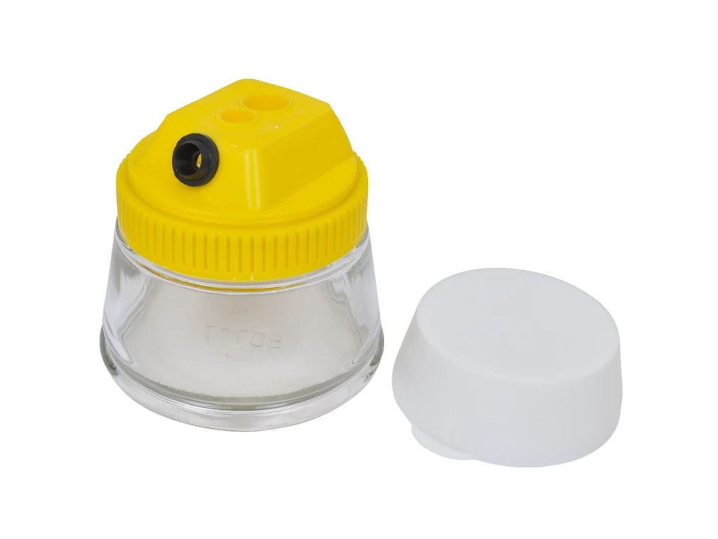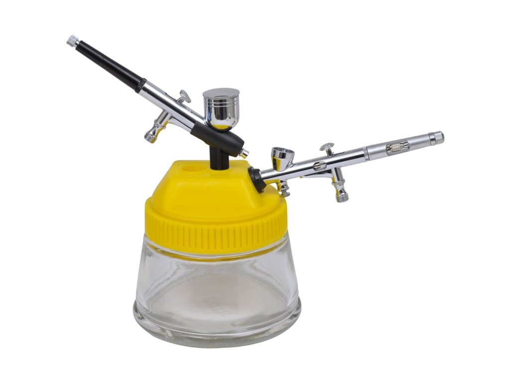 Čisticí nádoba 3 v 1 představuje pohodlný způsob, jak zabránit potřísnění při stříkání rozpouštědla přes airbrush pistoli. Víčko a láhev se také snadno čistí. Víčko lze použít také jako paletu nebo nádobu na vodu.