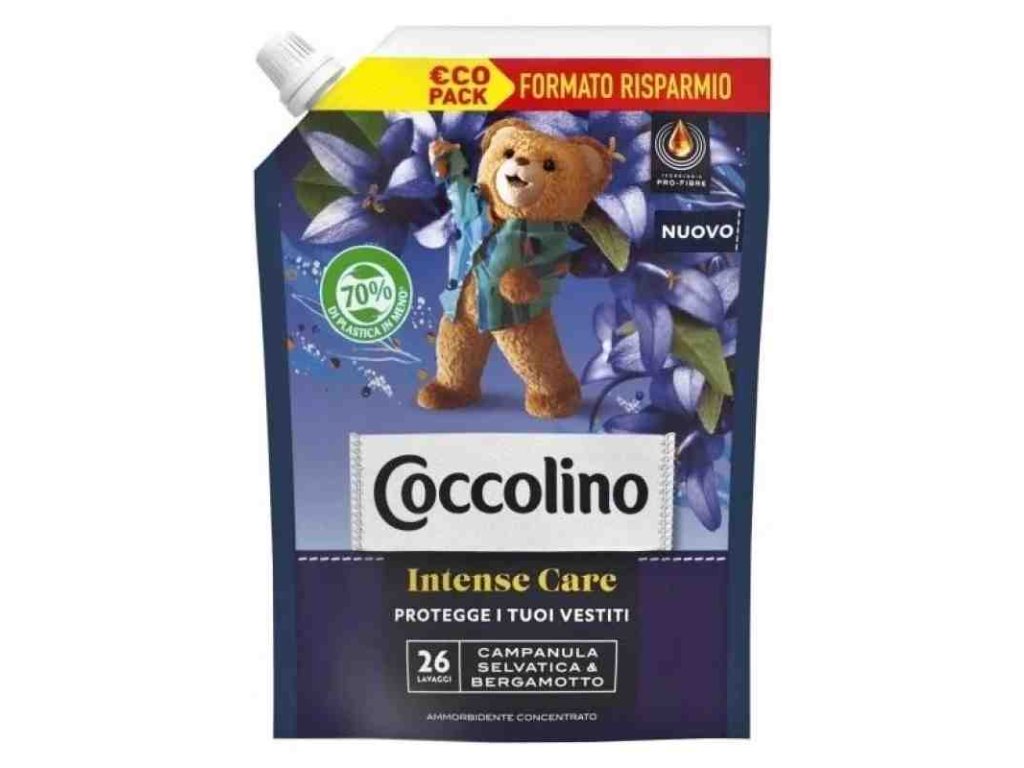 Coccolino italská koncentrovaná aviváž - Campanula Selvatica & Bergamotto - 26 pracích dávek - eko balení koncentrovaný avivážní přípravek značky Coccolino, dopřeje sofistikovanou vůni vašemu prádlu. Ukrývá v sobě dokonale vyváženou, bohatou a intenzivní vůni . S intenzivní péčí a se složením s revoluční technologií PRO-FIBRE, která proniká hluboko do vláken a chrání vaše prádlo před poškozením způsobeným praním.