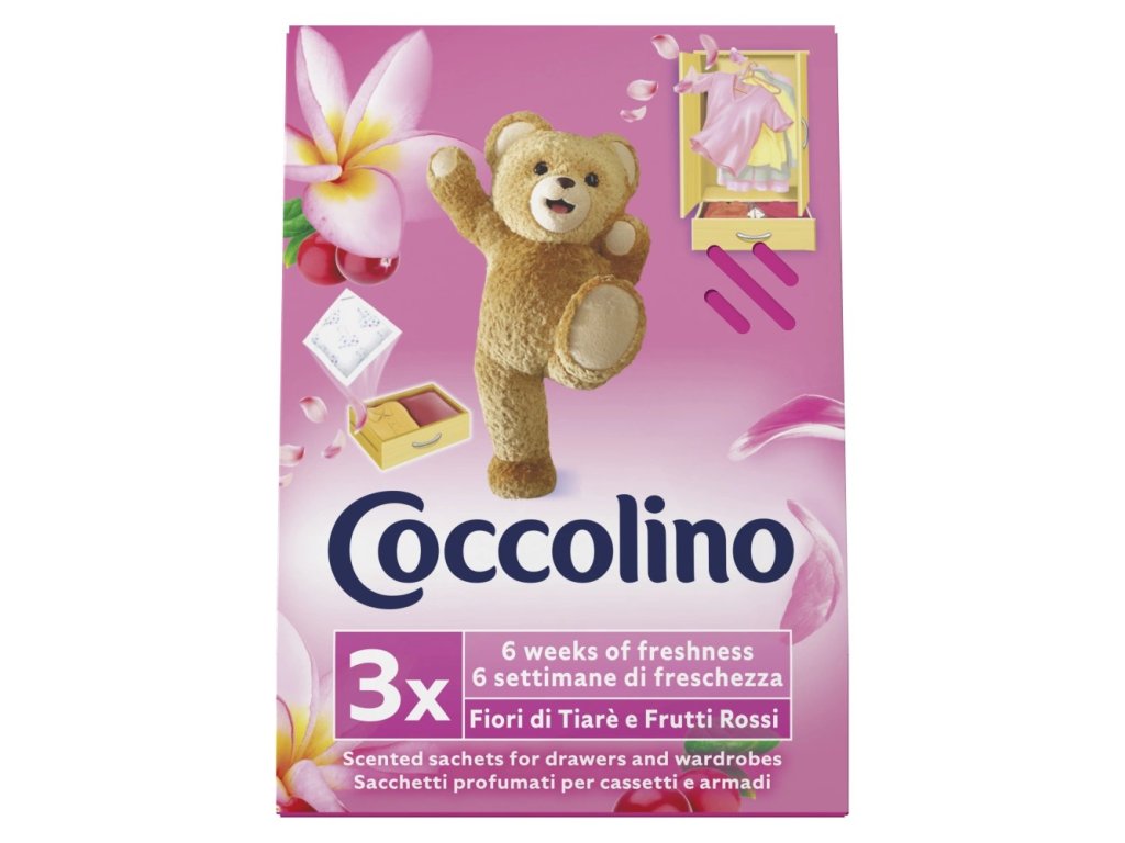 Osvěžovač vzduchu Coccolino obsahuje 3 vonné sáčky, které jsou naplněny kuličkami uvolňujícími vůni postupně. Coccolino Frutti Rossi tak přinese vašemu šatníků a prádlu osvěžující vůni až po dobu 6 týdnů. Osvěžovač vzduchu můžete pověsit do skříně mezi oblečení, vložit do prádelníku nebo jen položit na poličku v šatníku.