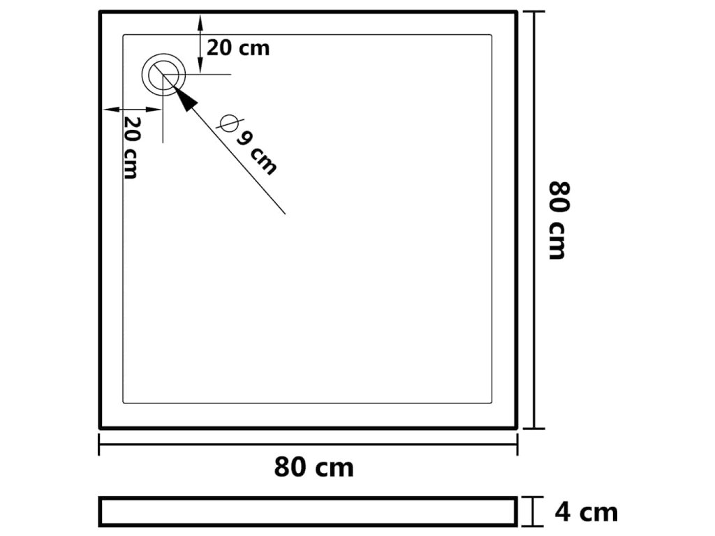 - Otvor pro standardní 9cm odtok (odtok není součástí balení)