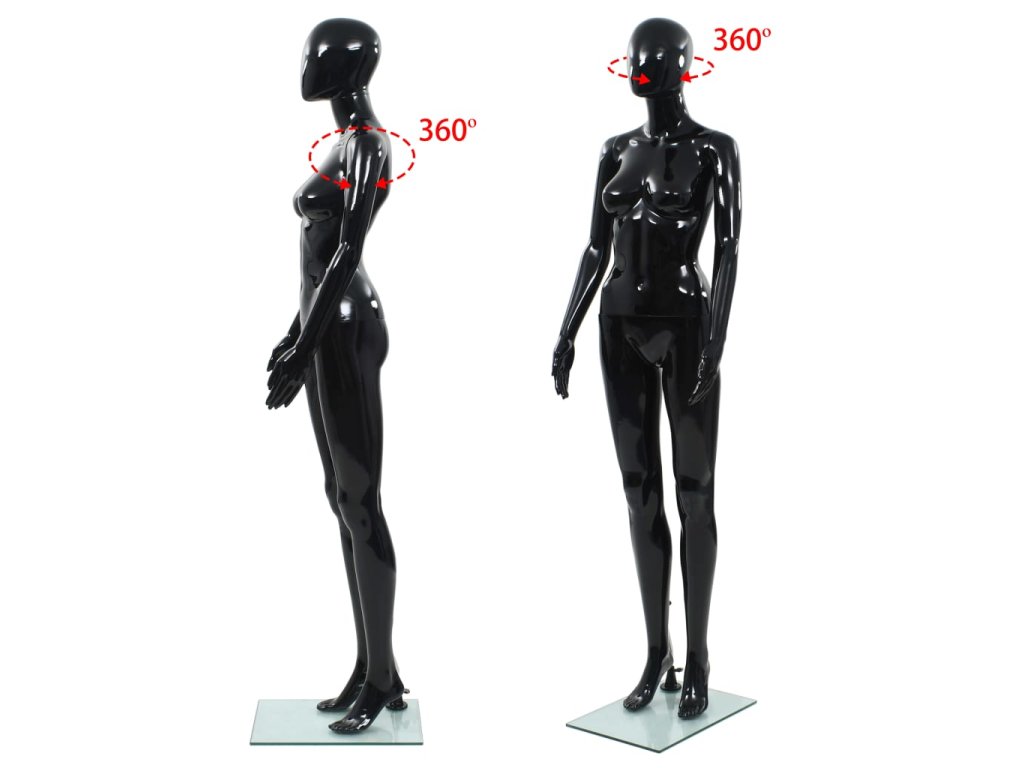 Dámská figurína celá postava základna sklo lesklá černá 175 cm 142929