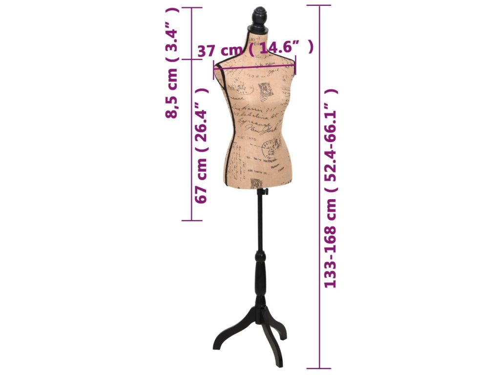 Torzo je vyrobené z antistatické juty. Výšku figuríny je možné nastavovat od 133 do 168 centimetrů, takže ji snadno přizpůsobíte vašim specifickým potřebám.