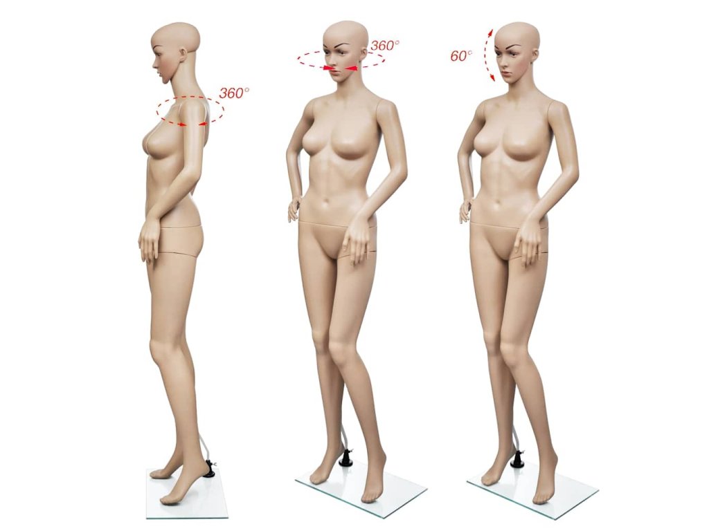 Hlavu a paže lze otáčet o 360° a obličej se dá pohybovat nahoru a dolů o 60°. Celé tělo ženy je vyrobeno z ekologicky šetrného PE. Tento materiál není jen šetrný k životnímu prostředí, ale je také odolný vůči opotřebení.