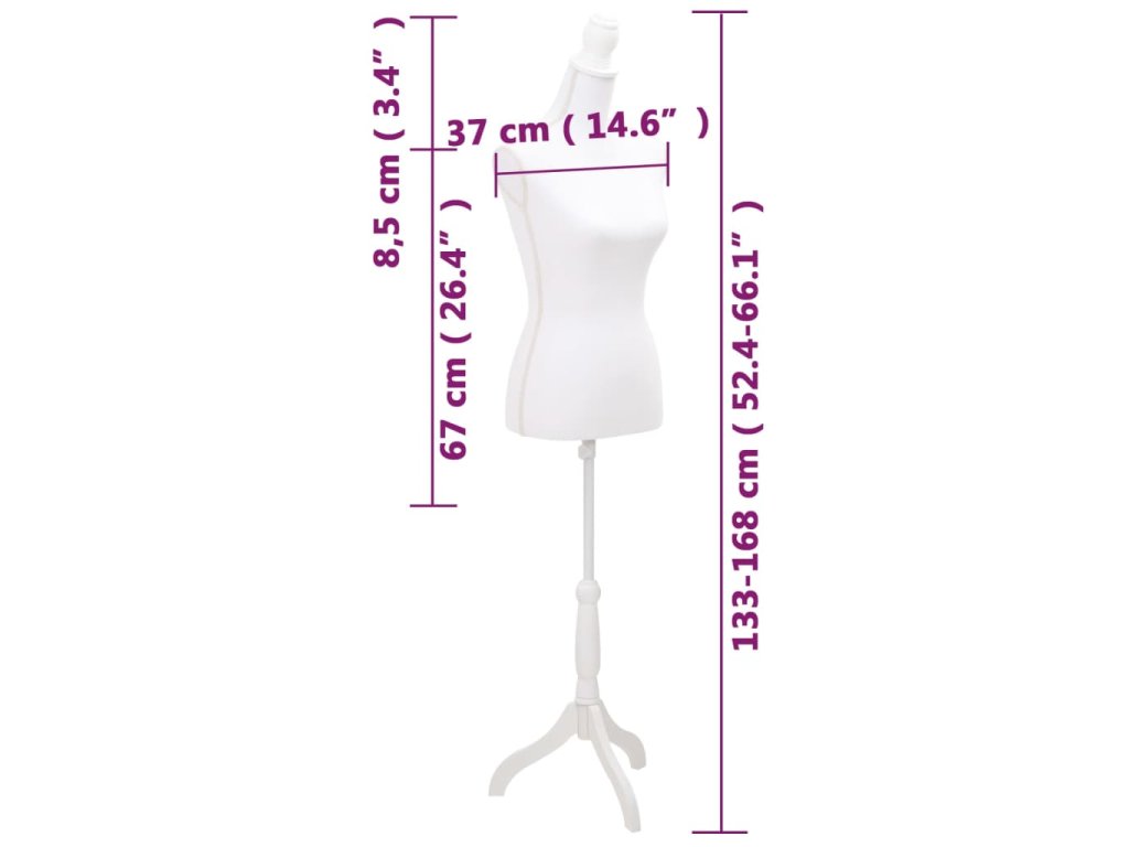 Výšku této aranžérské panny lze nastavovat od 133 do 168 cm. Rozsah nastavení vám umožní adaptovat figurínu vašim specifickým potřebám. Torzo panny je zhotovené ze 100% polyesteru a lze do něj volně zapichovat špendlíky.