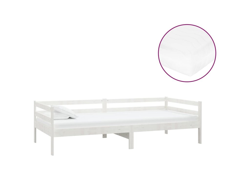 Denní postel s matrací 90 x 200 cm bílá masivní borové dřevo 3083560
